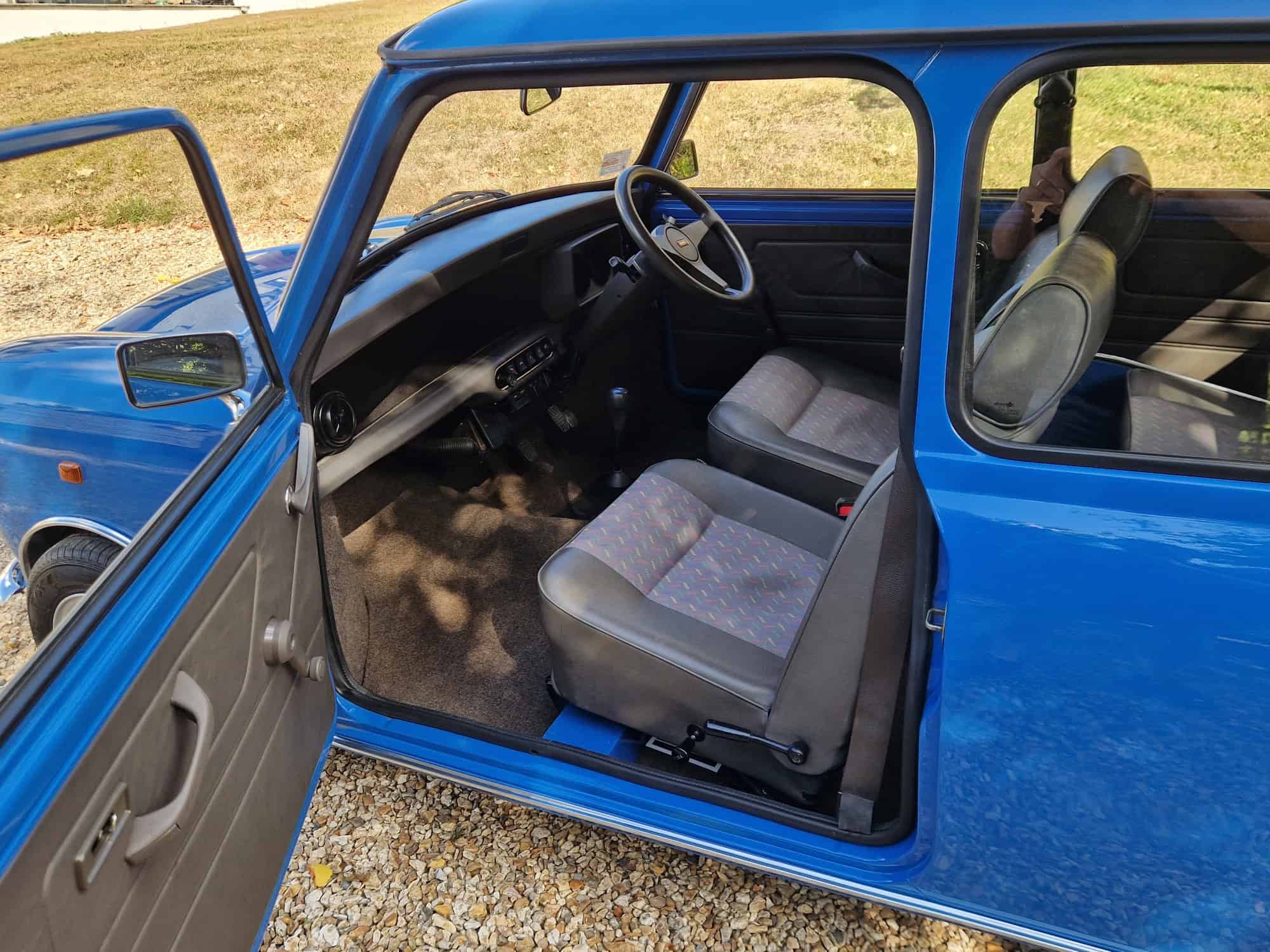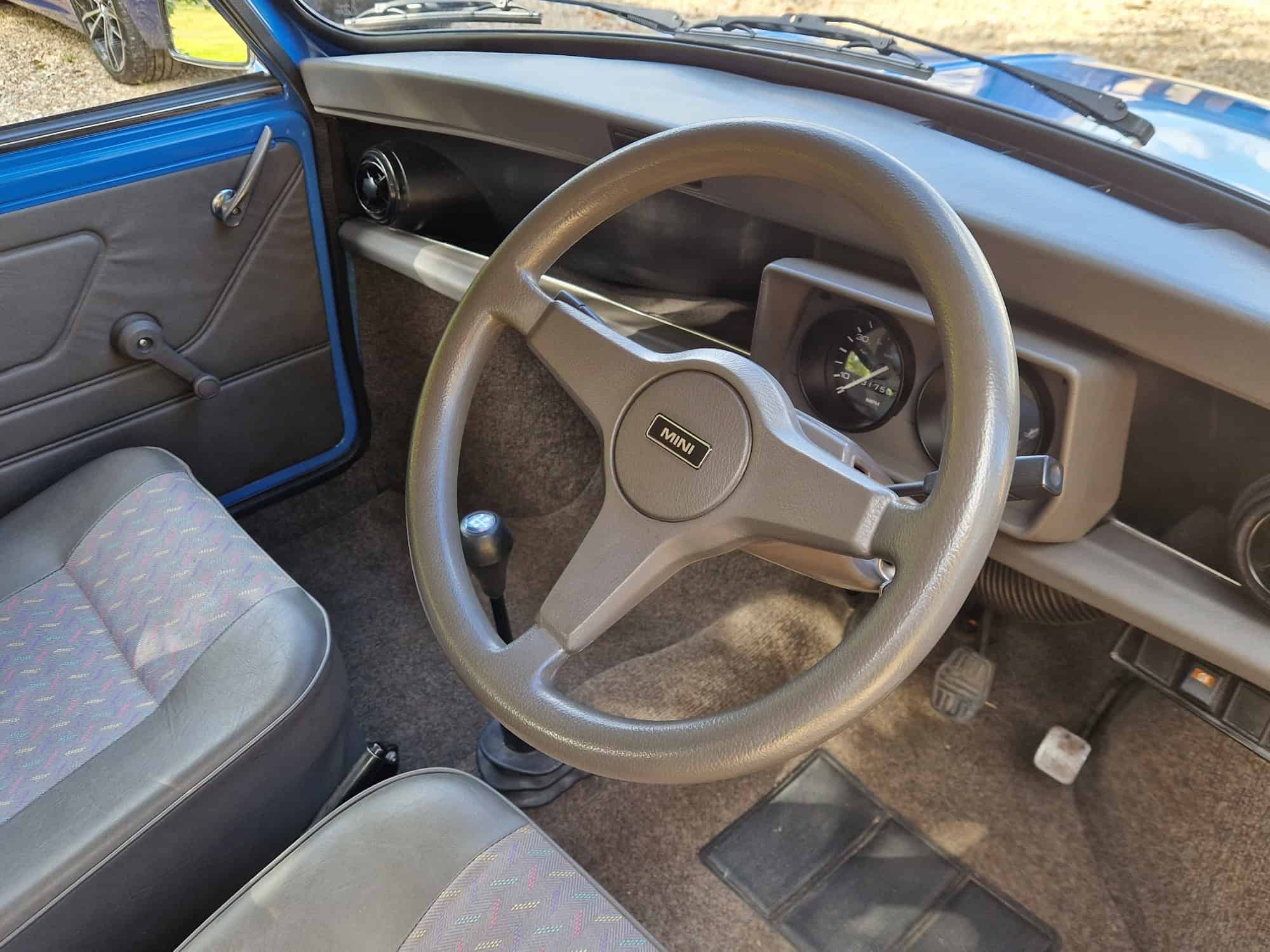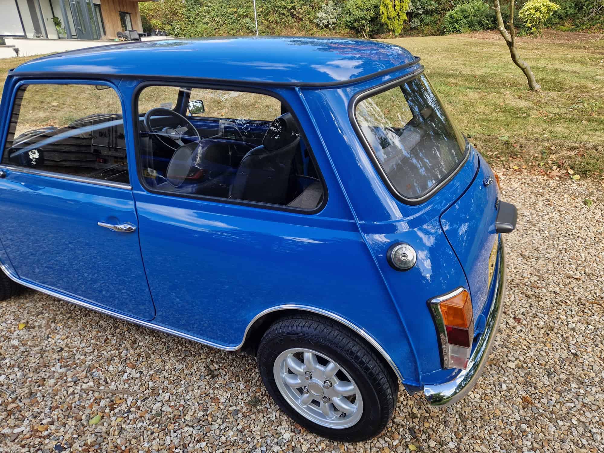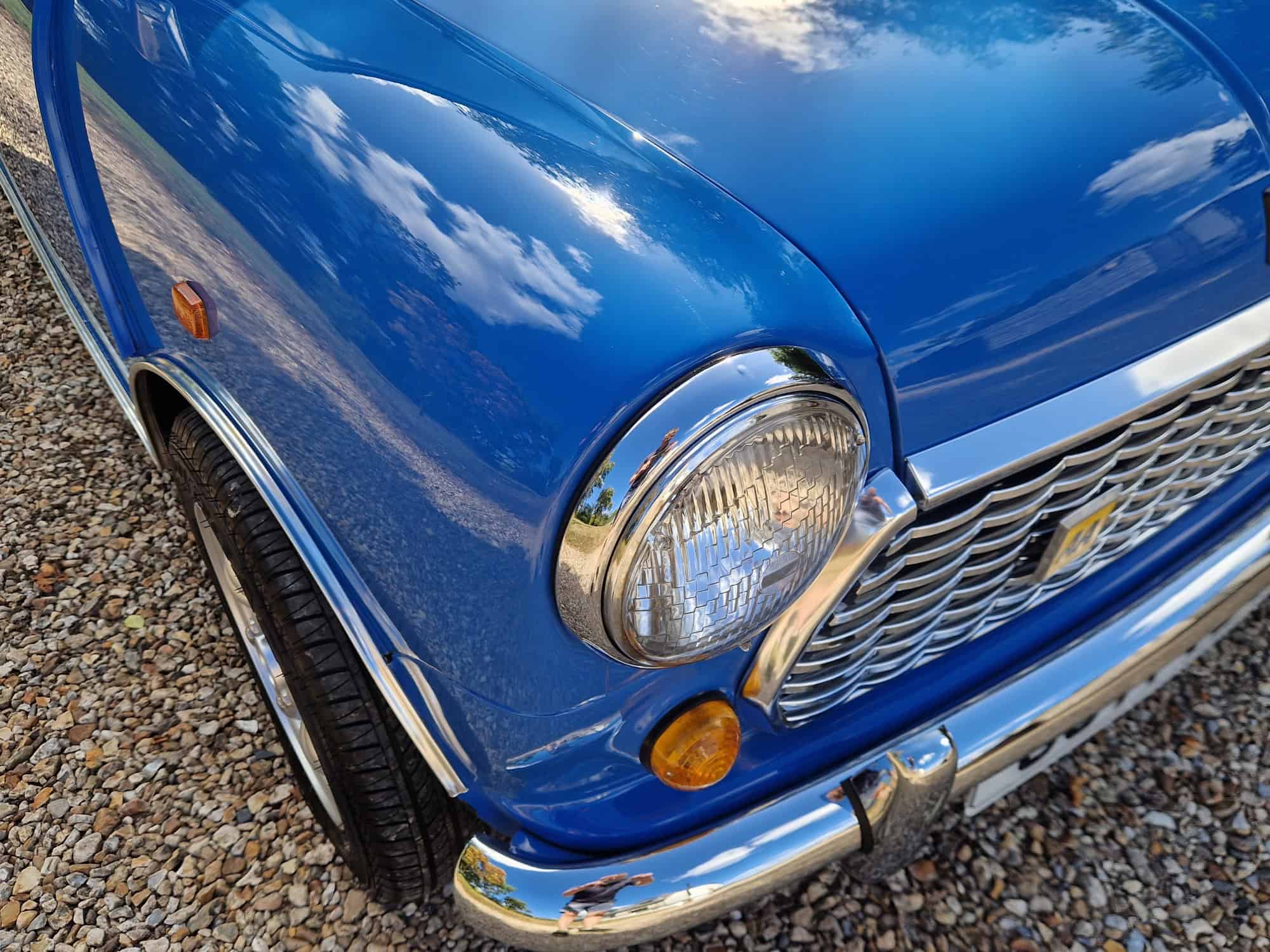 1990 Rover Mini City E 998 cc In rare and very popular Henley Blue. Henley blue is a lovely pale blue although it can look darker in the pictures. The condition of this 35 year old mini is really nice due to having a lot of time and money spent on it. As a result the bodywork is lovely, as is the underside which will give its new owners complete peace of mind. The interior is all original and also very clean and nice. It has covered just 31800 miles from new and has a nice history file to show a good level of servicing and care over the years. The engine has been upgraded to stage one, which allows the engine to breath better with a 3 branch exhaust manifold, free flowing exhaust and air filter. It has then been set up with an improved carburettor needle. The internals of the engine are standard but the improvement of the stage 1 kit is said to be around 30% and it now pulls very well through the gears. It feels like it would keep up with a standard spec 1275 cc mini. The alloy wheels and tyres look great and are in immaculate condition. This is an eye catching mini which makes everyone smile and gets a lot of compliments due to its condition and colour. Free delivery to your door in my curtain sided van within 200 miles of Tiverton.