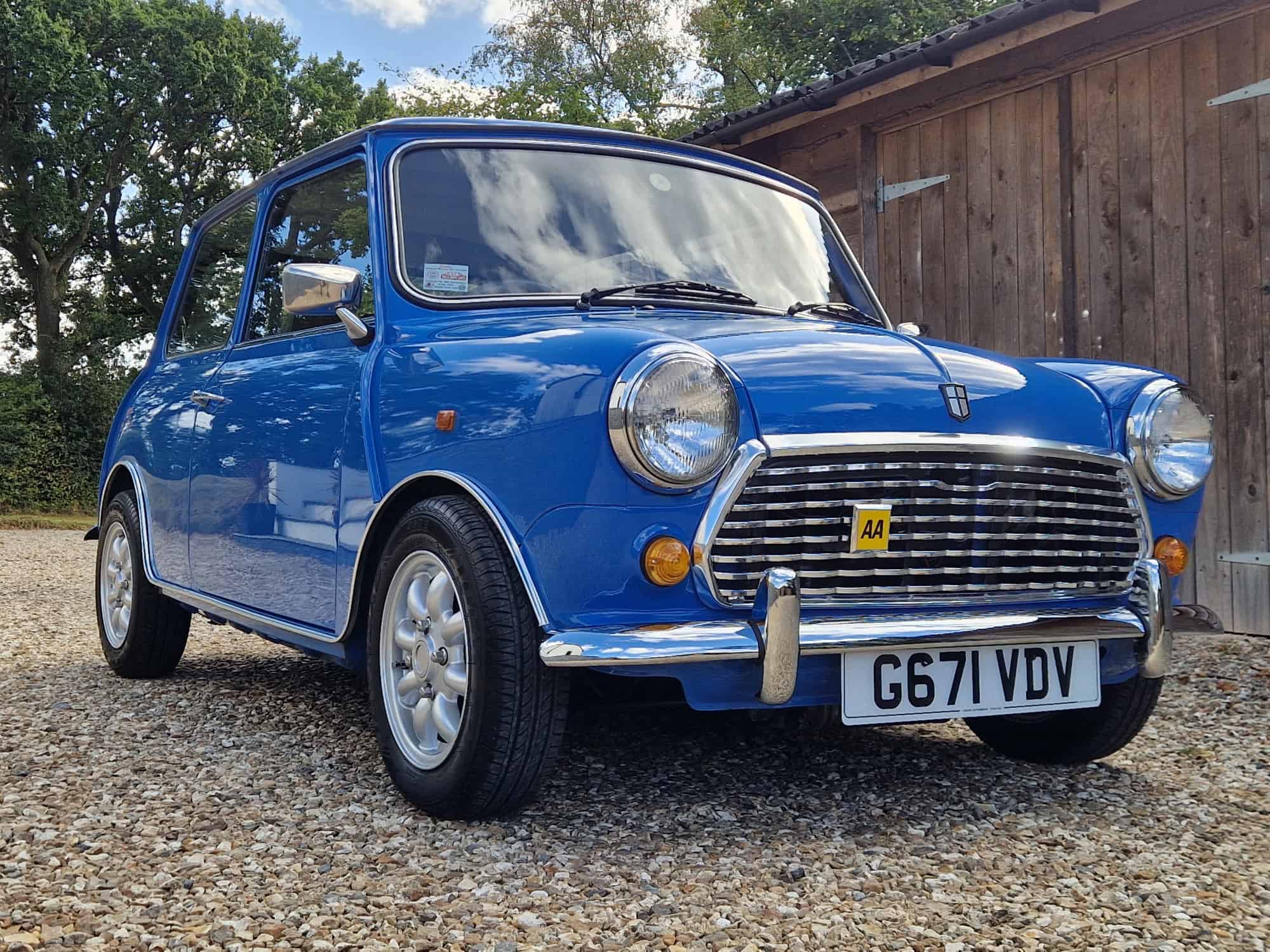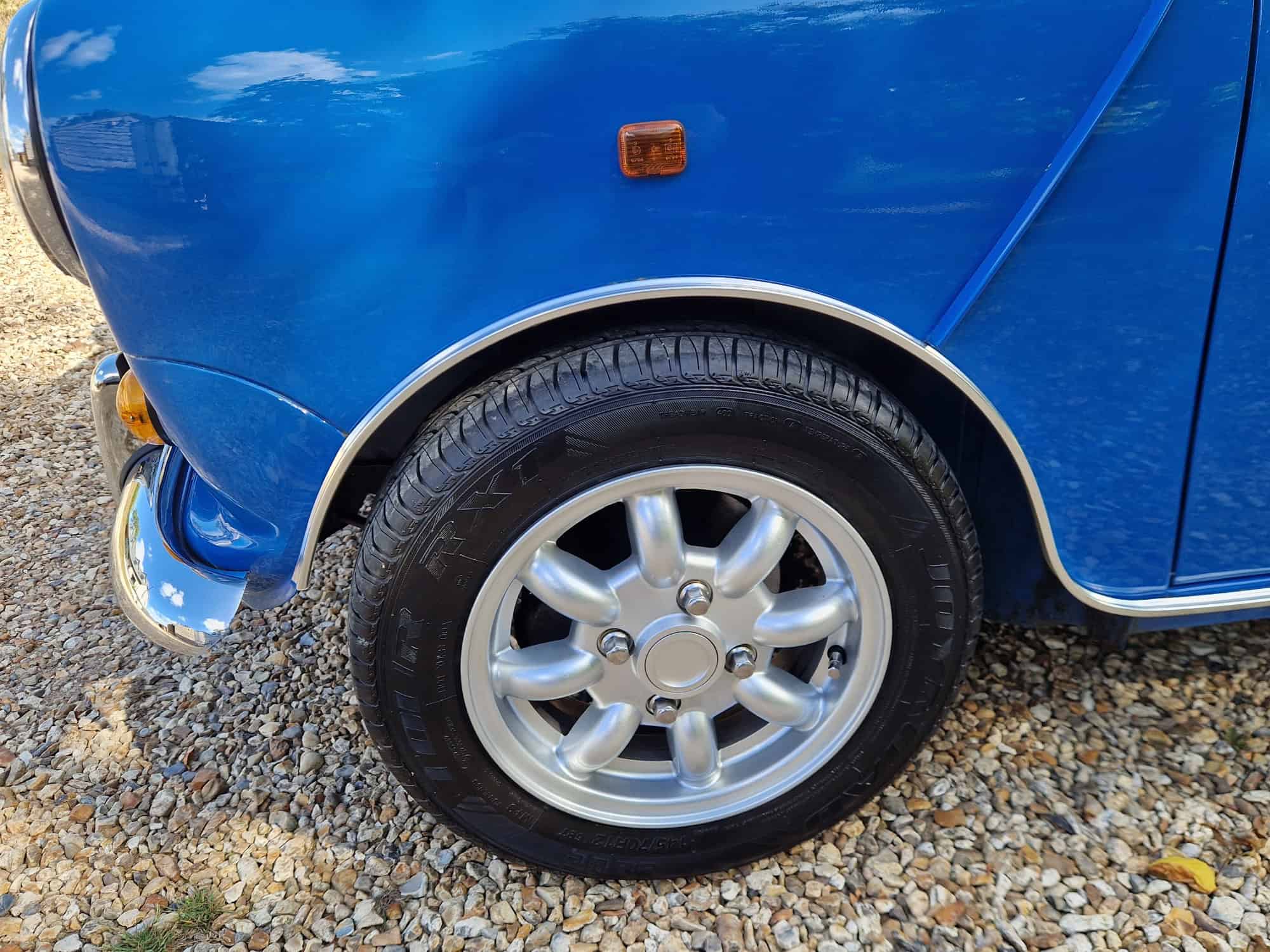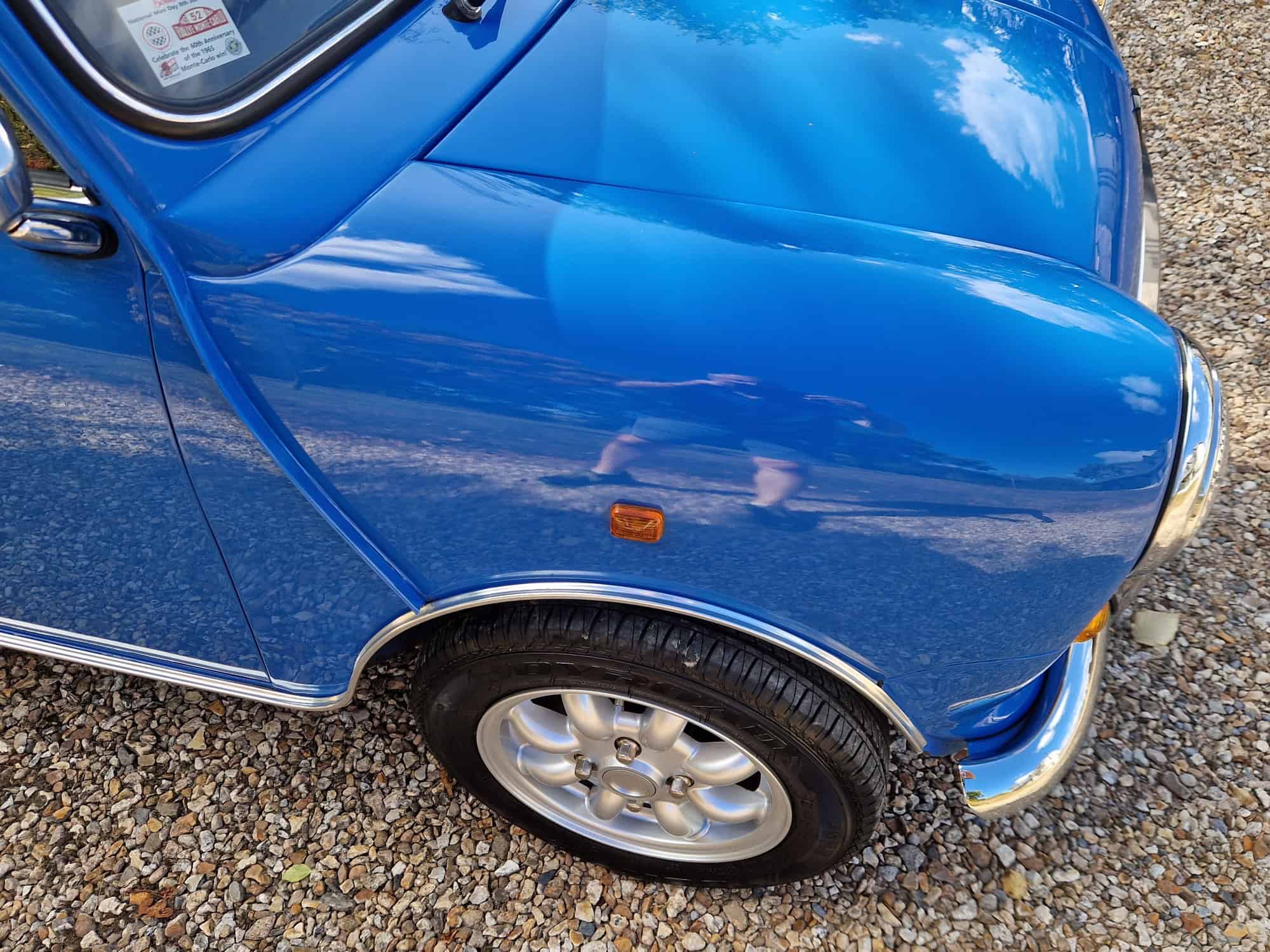 1990 Rover Mini City E 998 cc In rare and very popular Henley Blue. Henley blue is a lovely pale blue although it can look darker in the pictures. The condition of this 35 year old mini is really nice due to having a lot of time and money spent on it. As a result the bodywork is lovely, as is the underside which will give its new owners complete peace of mind. The interior is all original and also very clean and nice. It has covered just 31800 miles from new and has a nice history file to show a good level of servicing and care over the years. The engine has been upgraded to stage one, which allows the engine to breath better with a 3 branch exhaust manifold, free flowing exhaust and air filter. It has then been set up with an improved carburettor needle. The internals of the engine are standard but the improvement of the stage 1 kit is said to be around 30% and it now pulls very well through the gears. It feels like it would keep up with a standard spec 1275 cc mini. The alloy wheels and tyres look great and are in immaculate condition. This is an eye catching mini which makes everyone smile and gets a lot of compliments due to its condition and colour. Free delivery to your door in my curtain sided van within 200 miles of Tiverton.