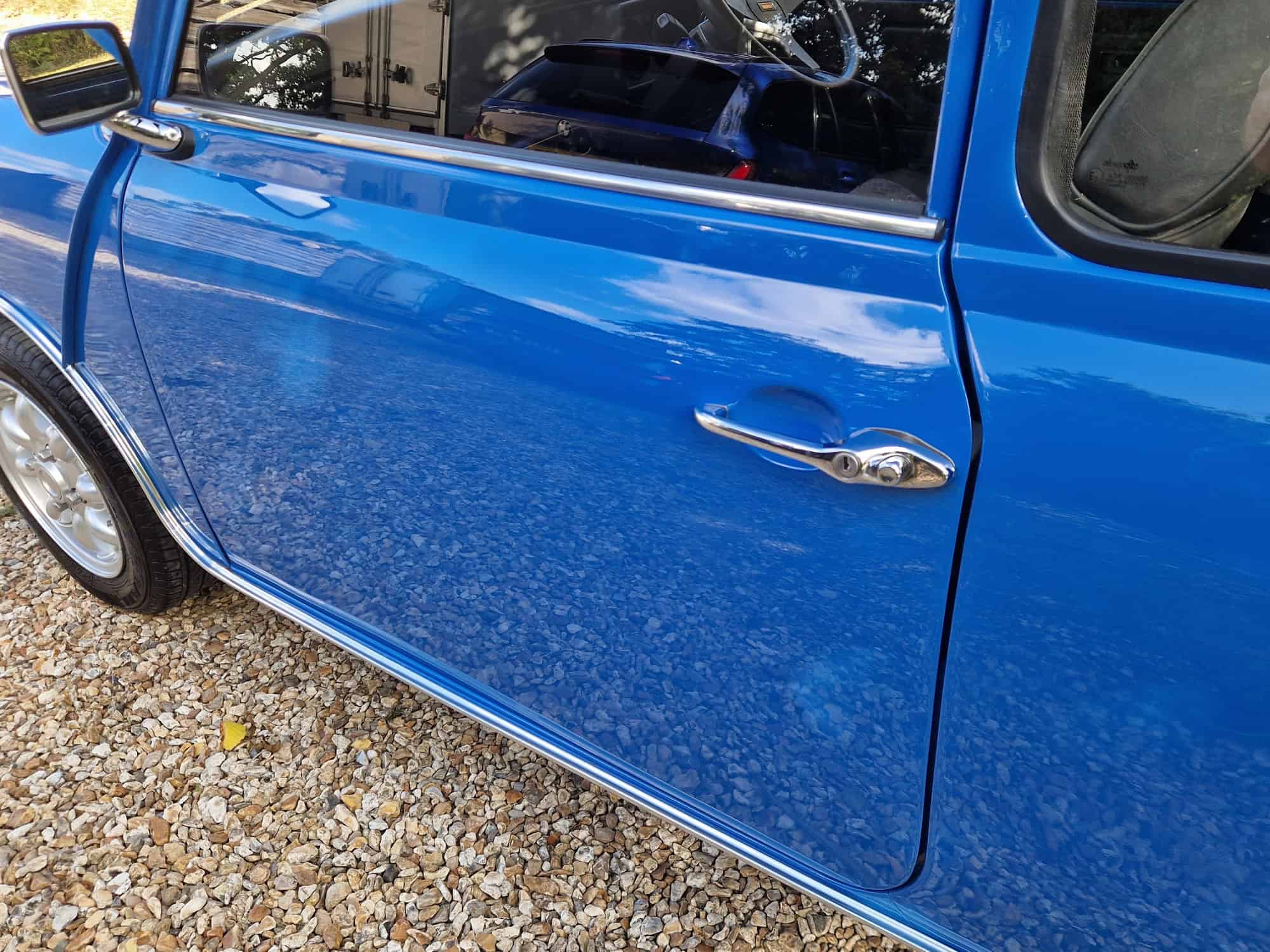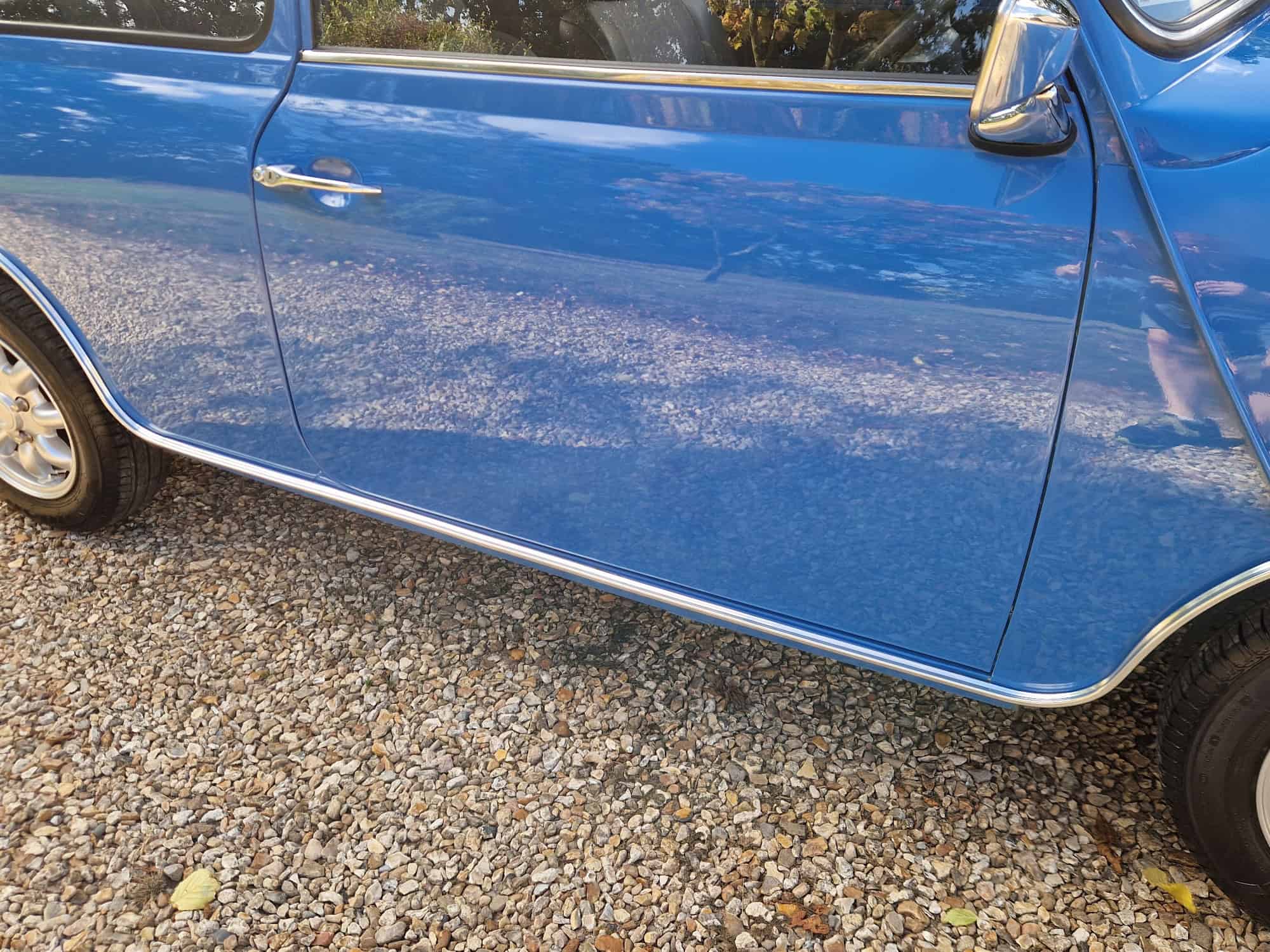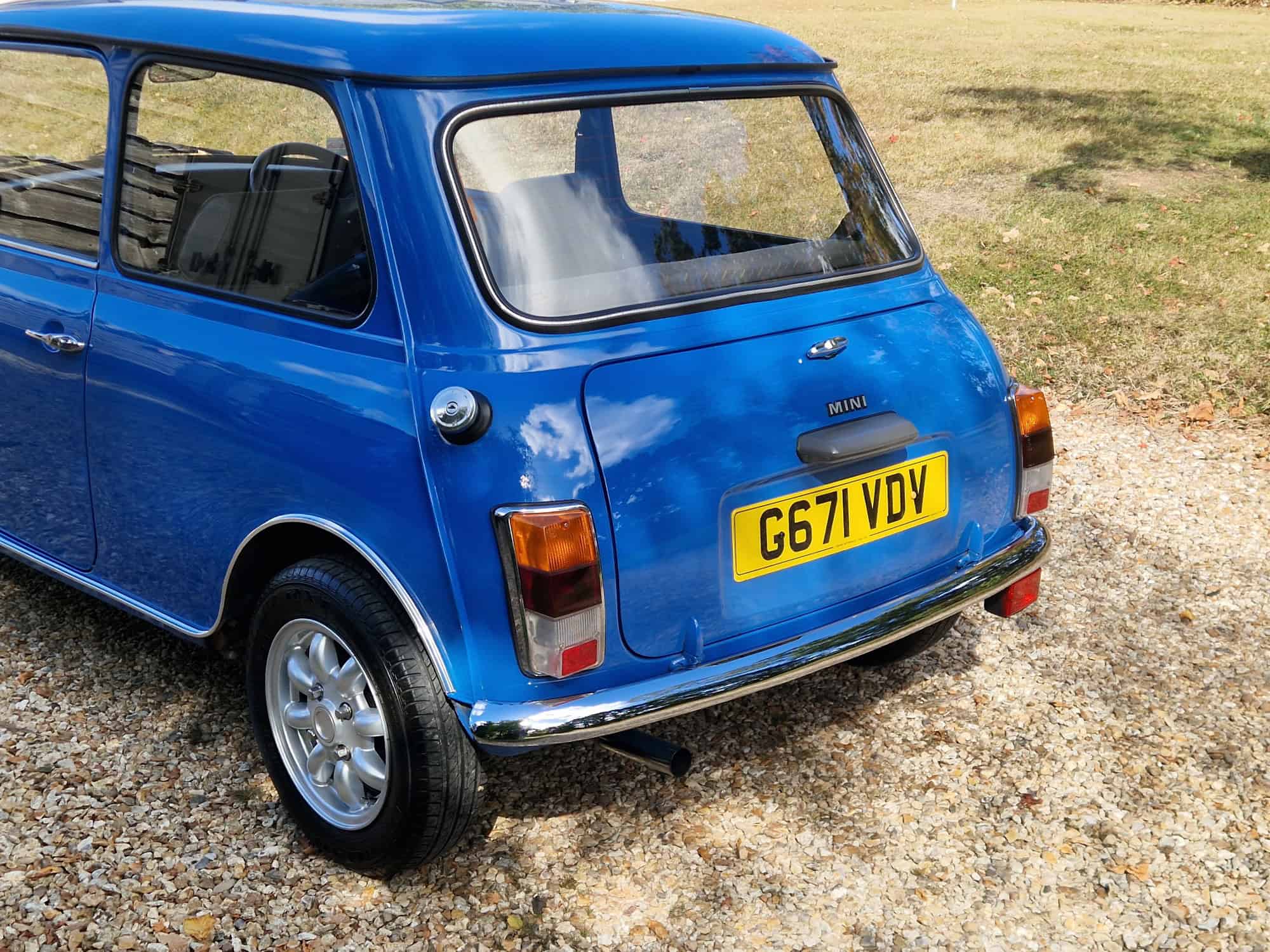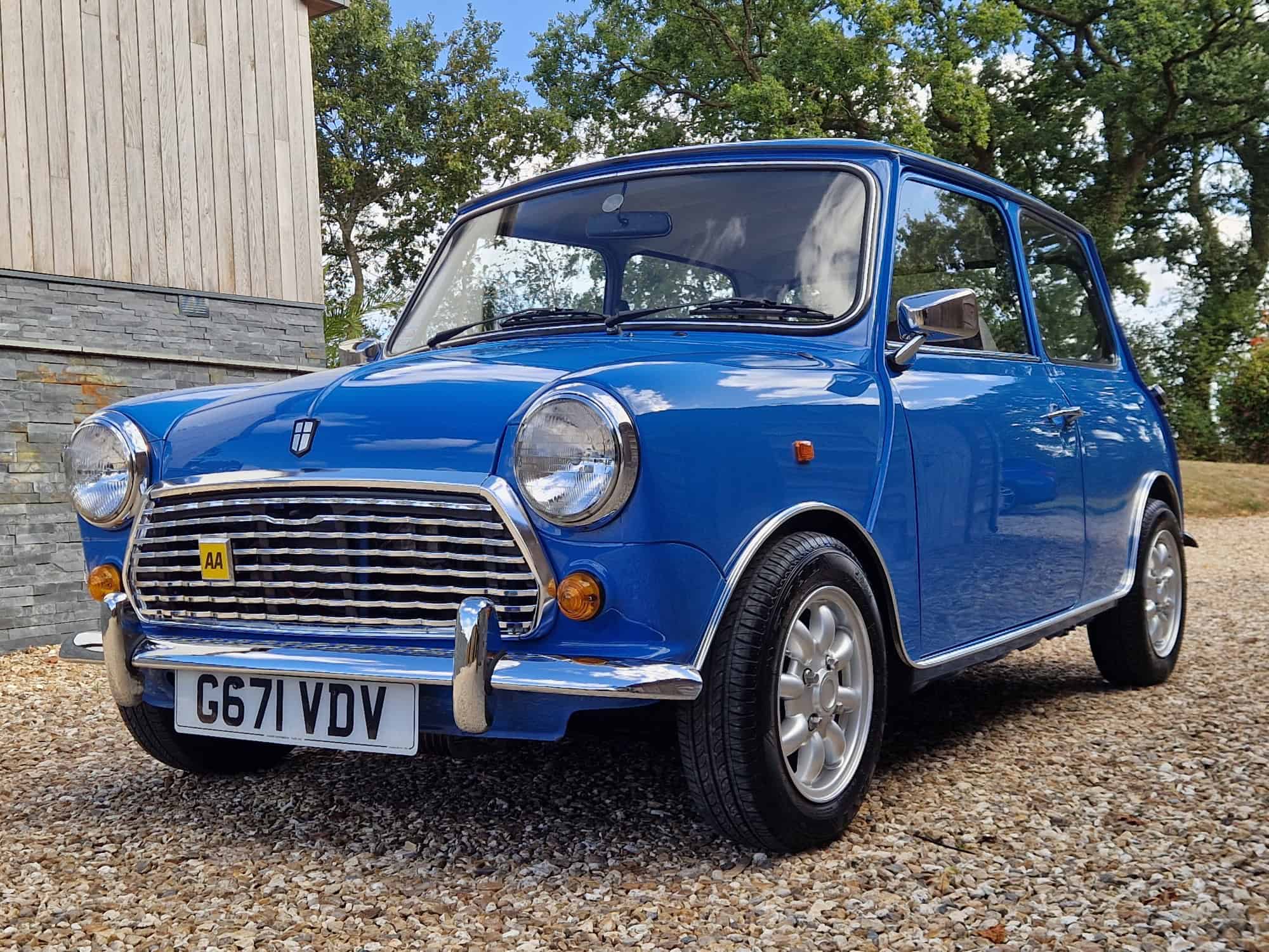 1990 Rover Mini City E 998 cc In rare and very popular Henley Blue. Henley blue is a lovely pale blue although it can look darker in the pictures. The condition of this 35 year old mini is really nice due to having a lot of time and money spent on it. As a result the bodywork is lovely, as is the underside which will give its new owners complete peace of mind. The interior is all original and also very clean and nice. It has covered just 31800 miles from new and has a nice history file to show a good level of servicing and care over the years. The engine has been upgraded to stage one, which allows the engine to breath better with a 3 branch exhaust manifold, free flowing exhaust and air filter. It has then been set up with an improved carburettor needle. The internals of the engine are standard but the improvement of the stage 1 kit is said to be around 30% and it now pulls very well through the gears. It feels like it would keep up with a standard spec 1275 cc mini. The alloy wheels and tyres look great and are in immaculate condition. This is an eye catching mini which makes everyone smile and gets a lot of compliments due to its condition and colour. Free delivery to your door in my curtain sided van within 200 miles of Tiverton.
