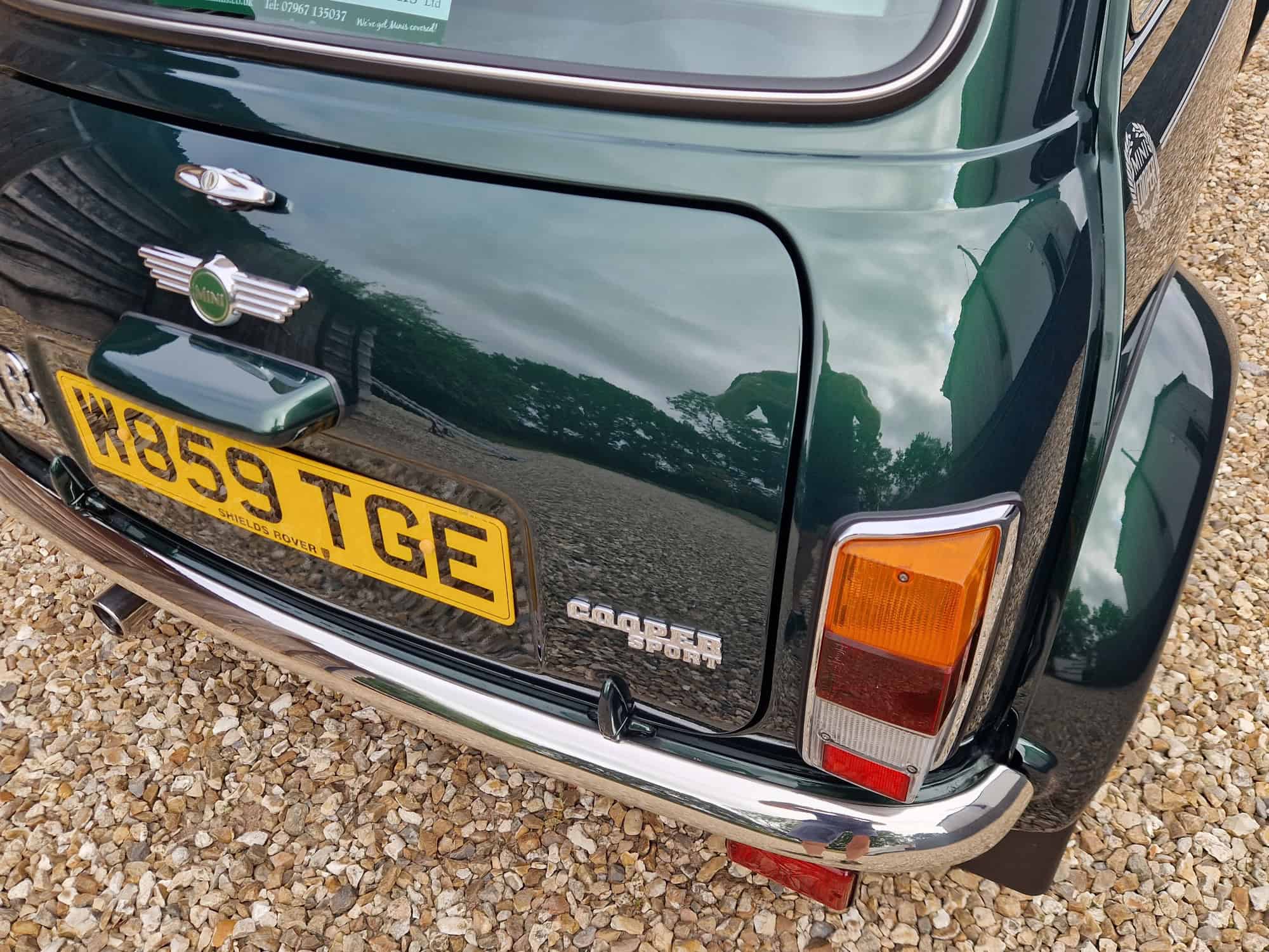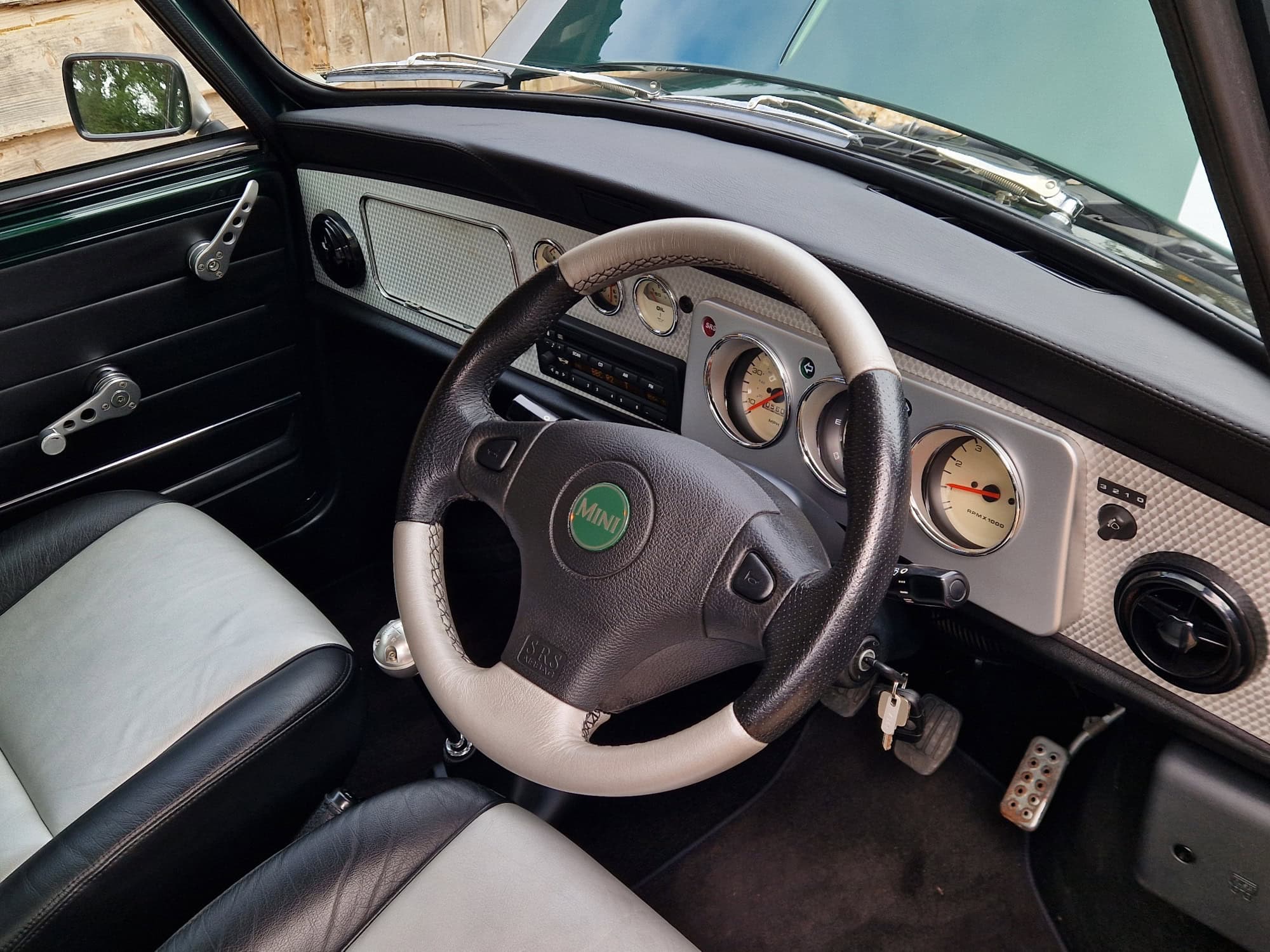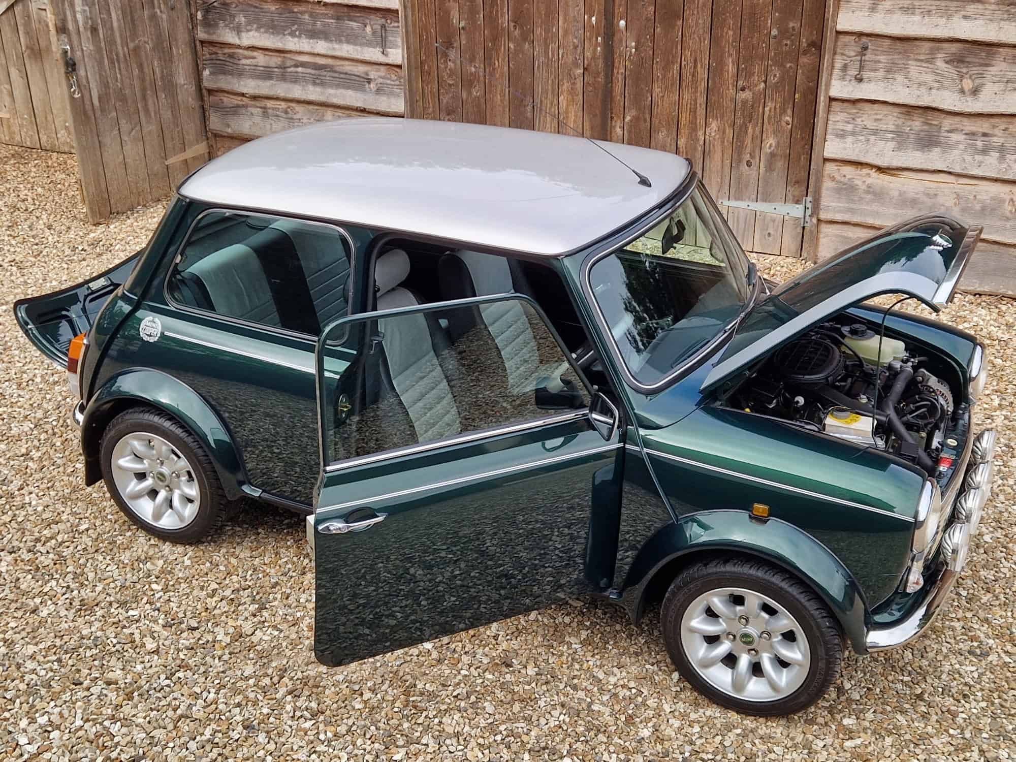 2000 W Rover Mini Cooper Sport in the last edition colours of British Racing Green and silver. It has the silver and black leather seats with alloy effect dashboard and alloy door furniture. It has the factory upgrade Rover CD radio which is rarely seen. The interior condition is excellent and reflects the very low milage of 5650 miles from new. The exterior body condition is also excellent and the underside was waxoil protected many years ago. The 13 inch alloy wheels are in lovely condition and have matching tyres all round. The engine and gearbox are super smooth and quiet reflecting the super low mileage and it drives really well and feels special to be in. I have the original book pack, a stamped service book and past MOTs to support the mileage. Finding cars of this mileage and condition is now very tricky. The very low mileage examples can be the cheaper cars to own and the best long term investments. Free delivery to your door in my curtain sided van within 200 miles of Tiverton.