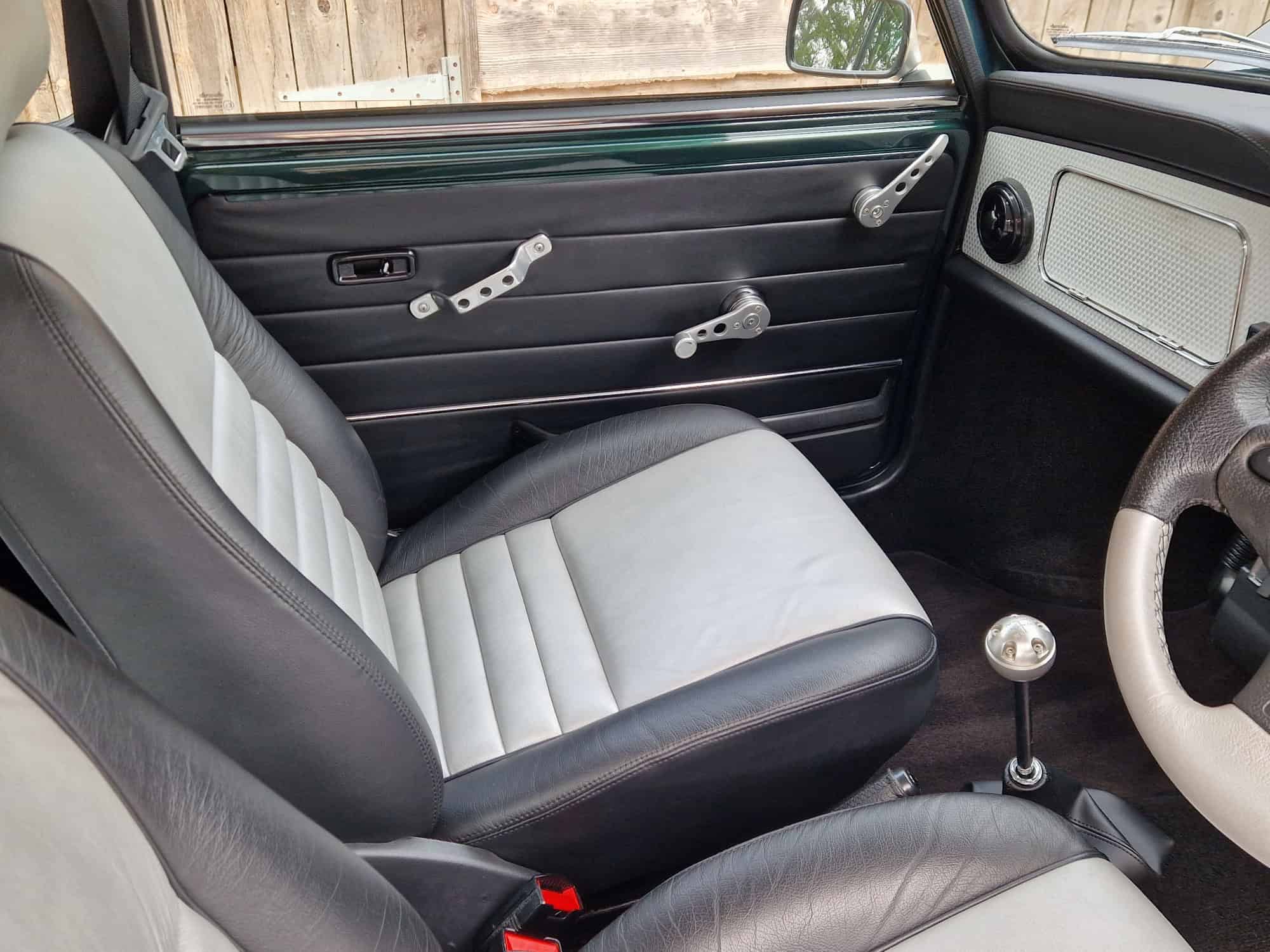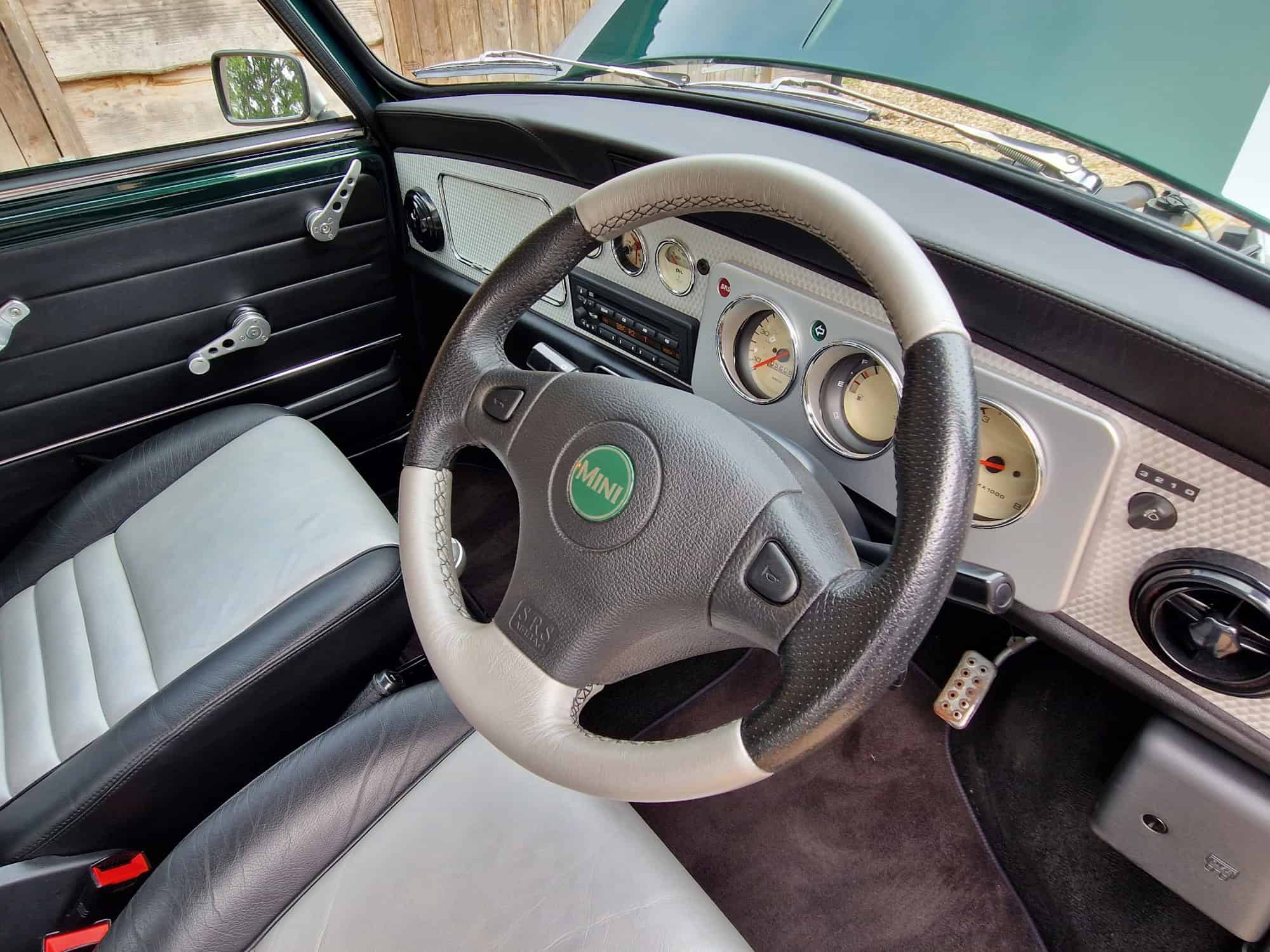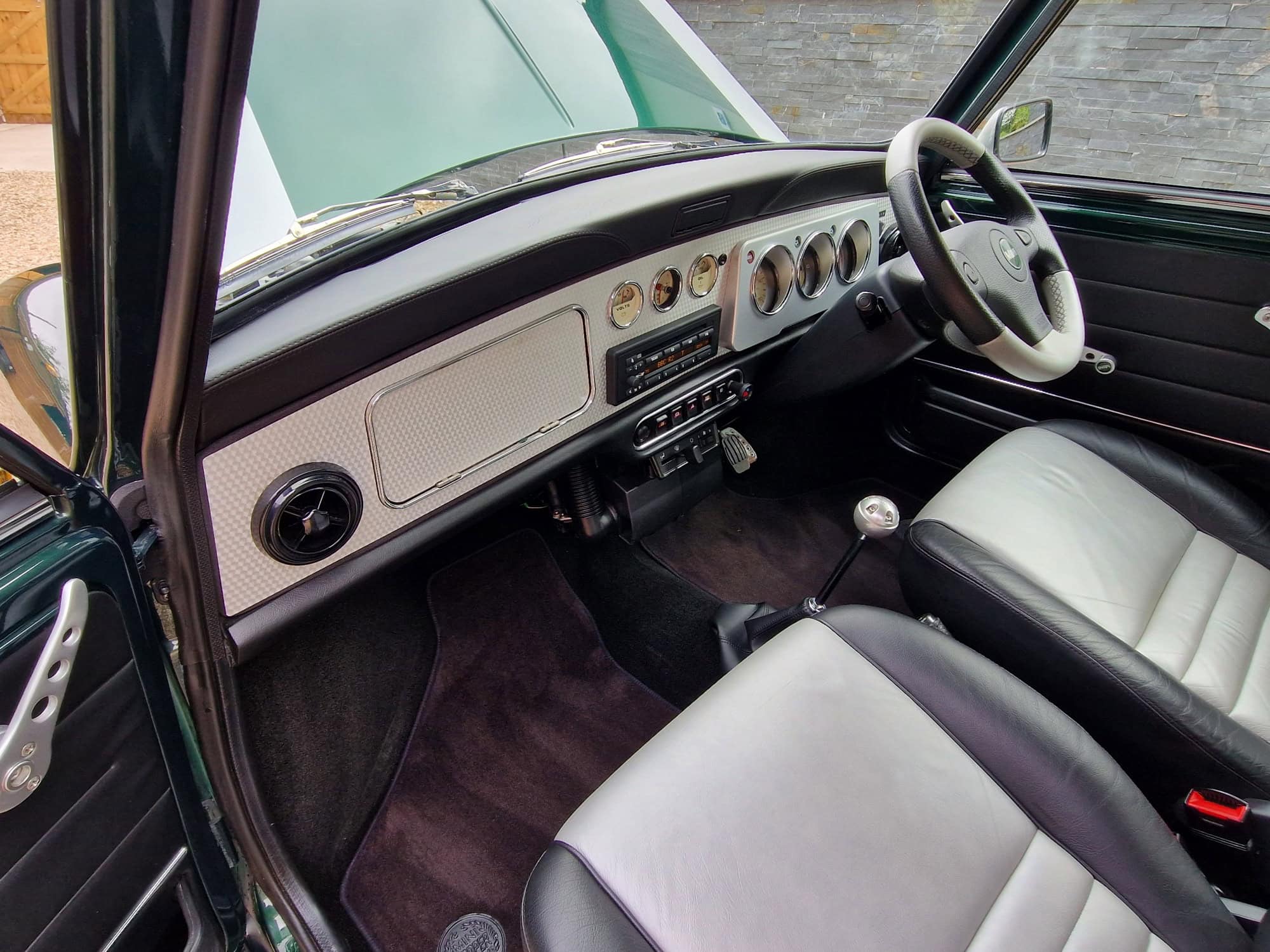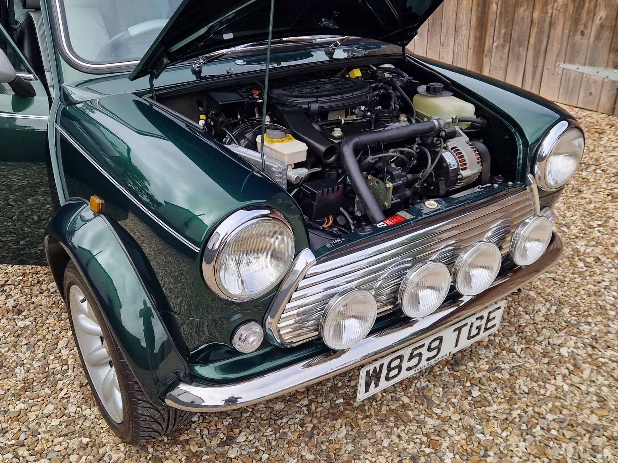 2000 W Rover Mini Cooper Sport in the last edition colours of British Racing Green and silver. It has the silver and black leather seats with alloy effect dashboard and alloy door furniture. It has the factory upgrade Rover CD radio which is rarely seen. The interior condition is excellent and reflects the very low milage of 5650 miles from new. The exterior body condition is also excellent and the underside was waxoil protected many years ago. The 13 inch alloy wheels are in lovely condition and have matching tyres all round. The engine and gearbox are super smooth and quiet reflecting the super low mileage and it drives really well and feels special to be in. I have the original book pack, a stamped service book and past MOTs to support the mileage. Finding cars of this mileage and condition is now very tricky. The very low mileage examples can be the cheaper cars to own and the best long term investments. Free delivery to your door in my curtain sided van within 200 miles of Tiverton.