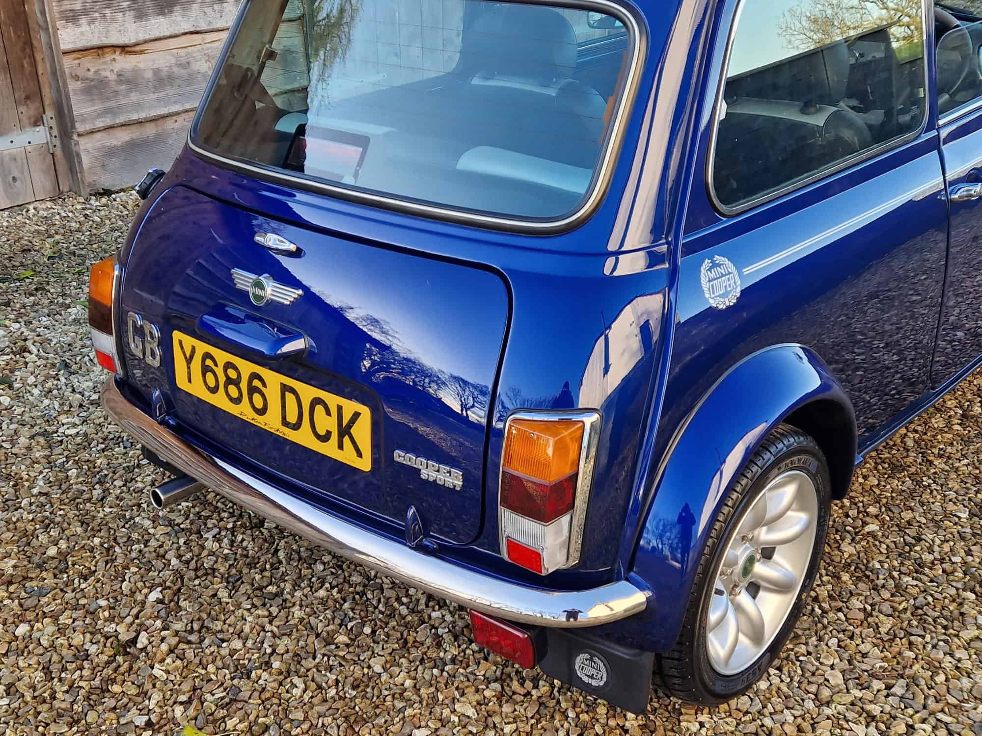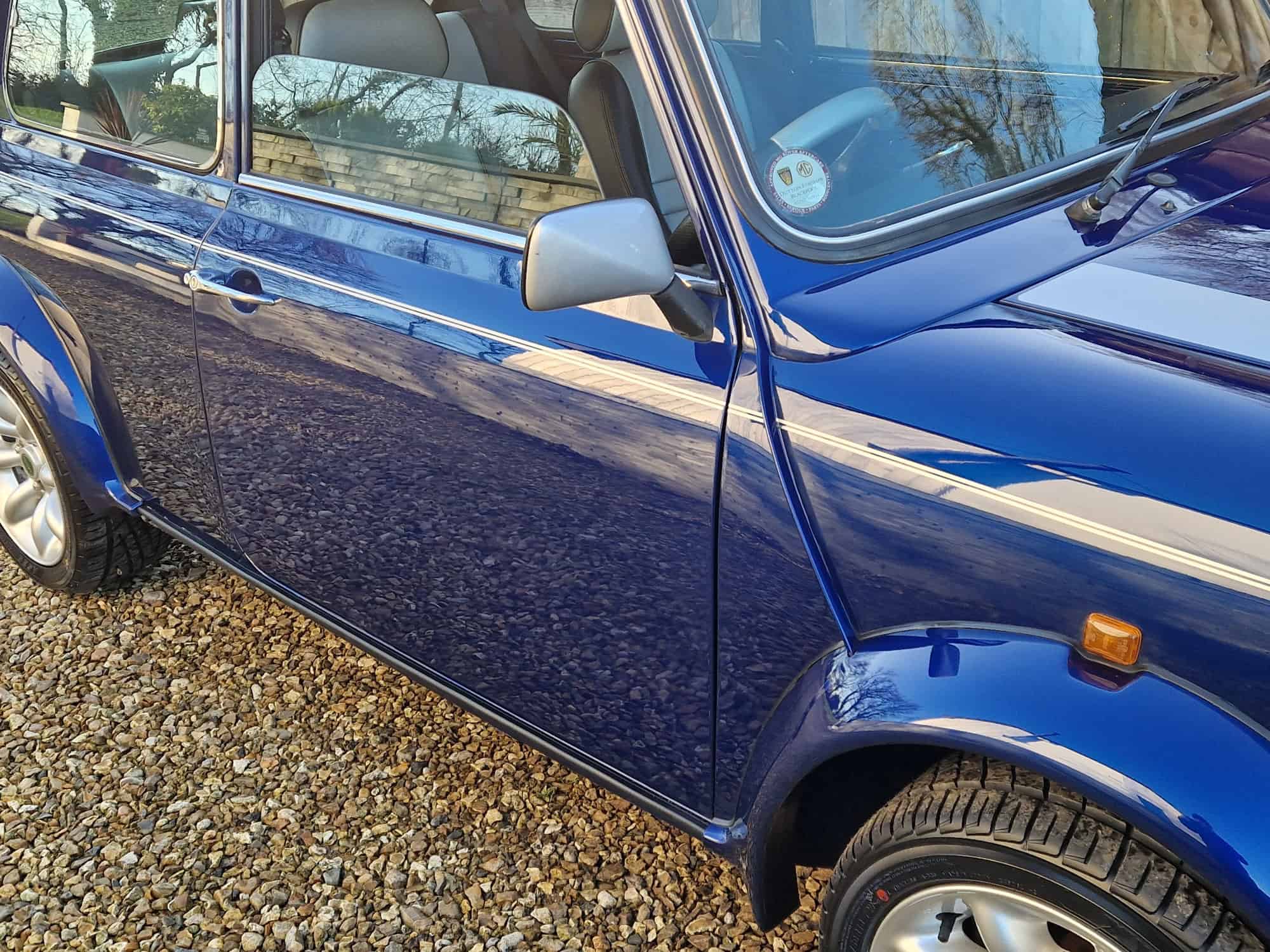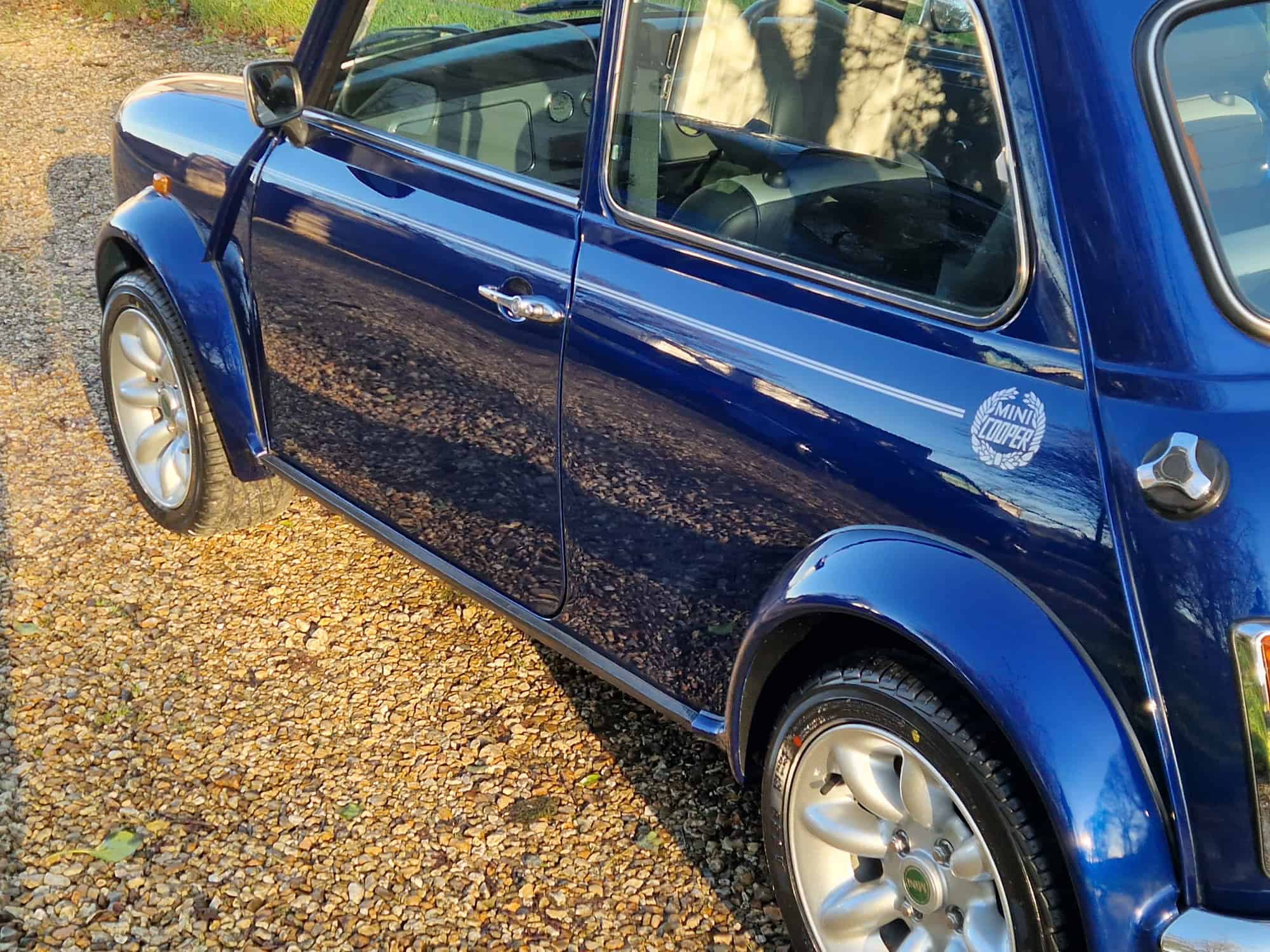 2001 Rover Mini Cooper Sport 500 in popular Tahiti Blue with silver and black leather interior. This is one of the last 500 Minis ever made and it has a signed certificate to support this. It also has the Sport 500 gift pack which is now rare and valuable. It has had just 2 owners in 24 years and the first lady owner for 20 years. The condition is excellent with original body panels and immaculate paintwork. It also drives every well with a quiet, smooth engine and gearbox which makes it very pleasurable and refined. It has covered just 28500 miles from new. It is totally standard and unmodified which is important as a future investment car. I have the original book pack, past MOT’s and both sets of keys. It has just had a service which included 4 new Yokohama tyres which always help with cornering feel and ride comfort. Free delivery to your door in my curtain sided van within 200 miles of Tiverton.