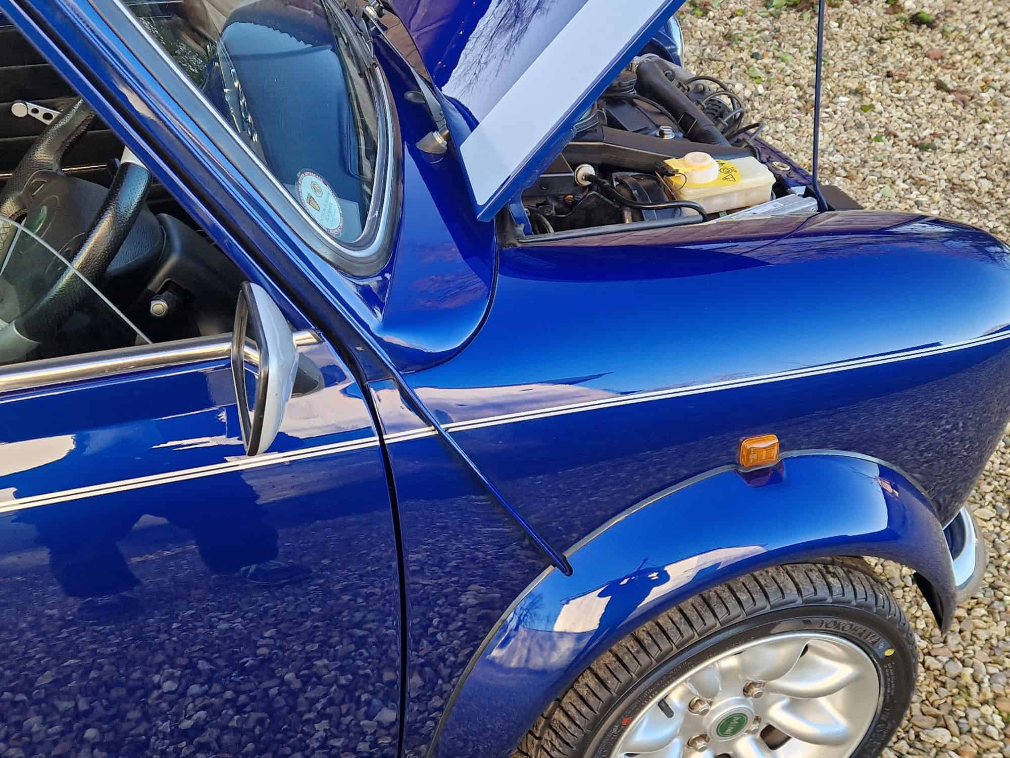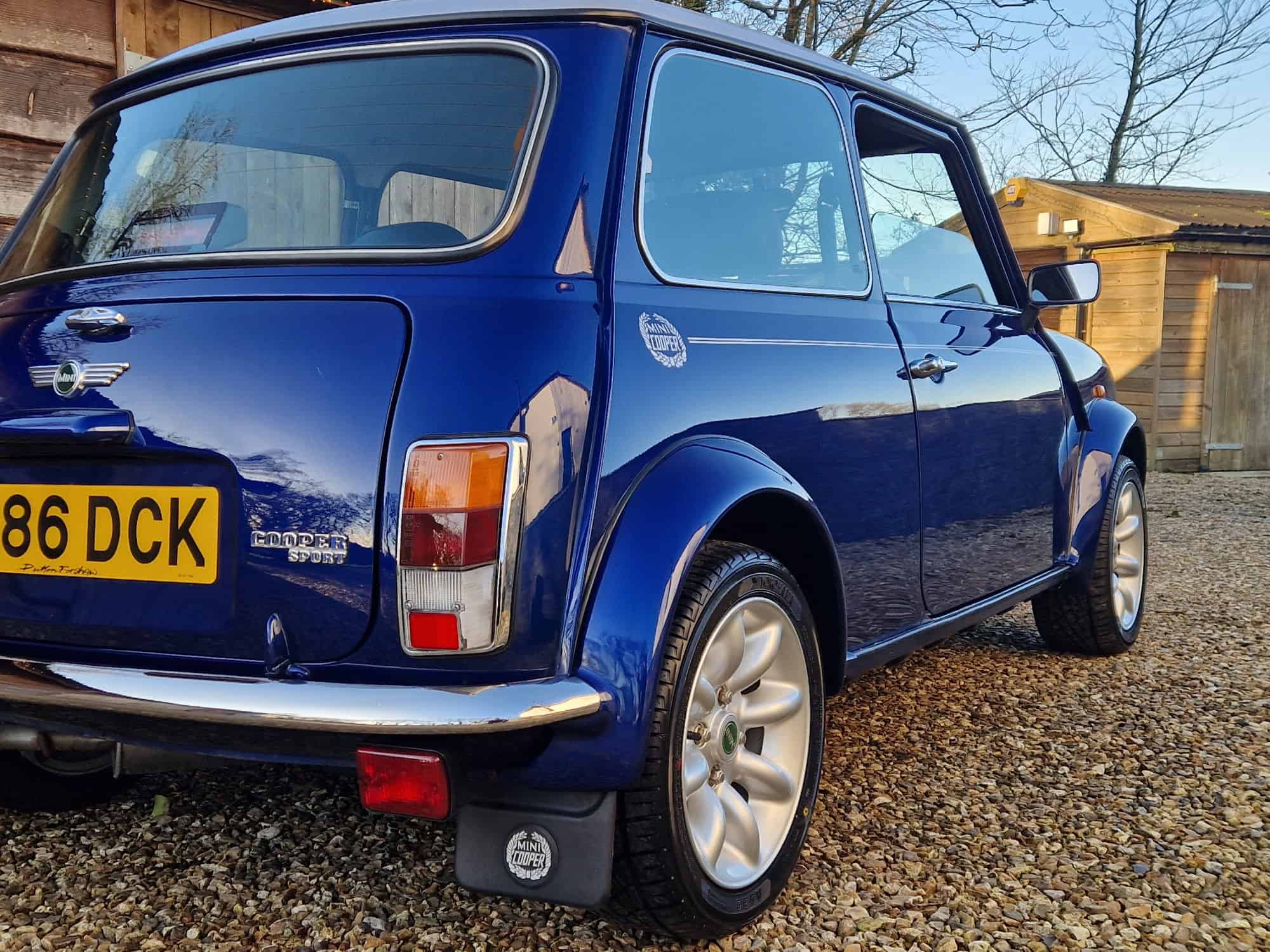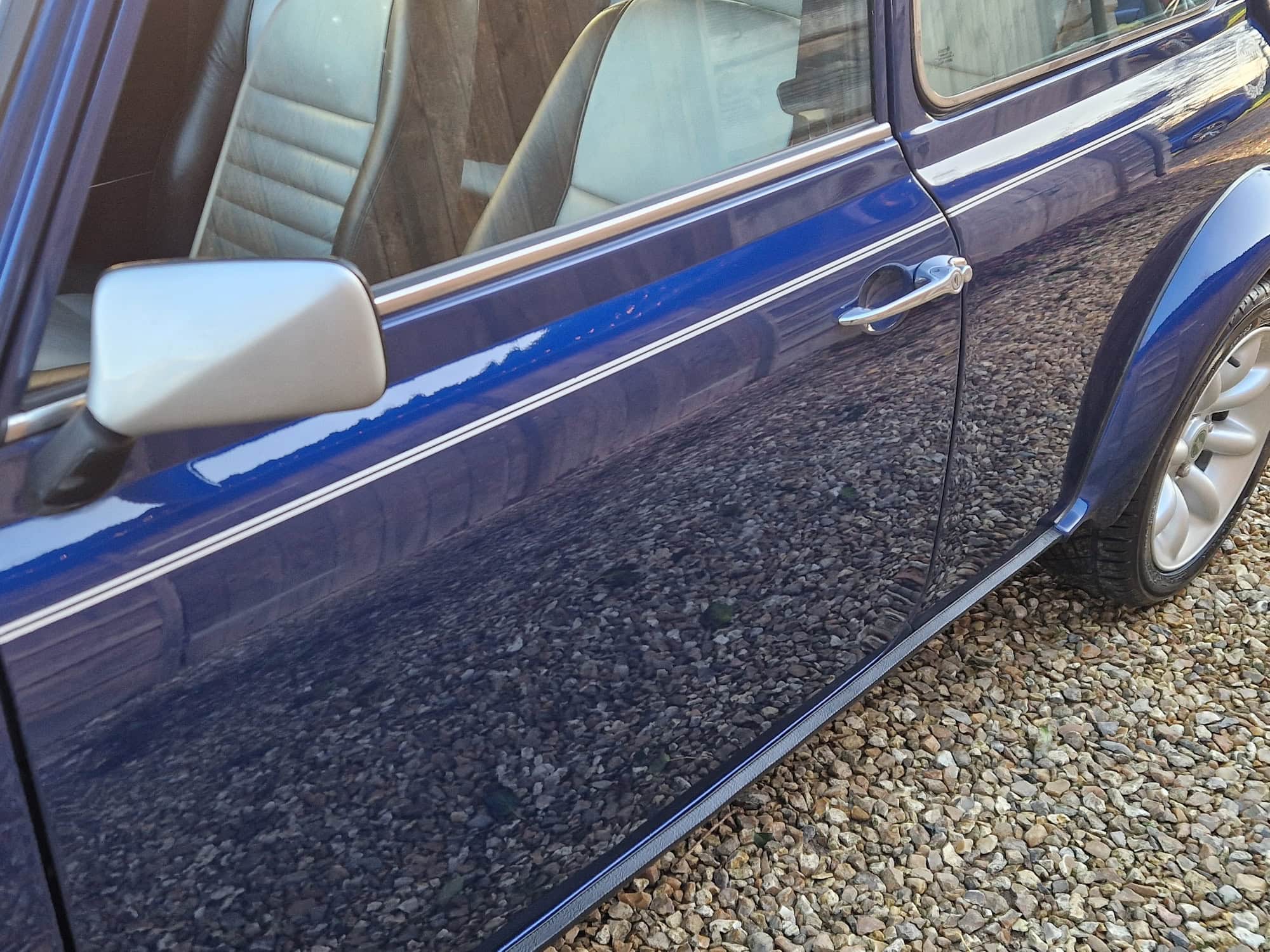 2001 Rover Mini Cooper Sport 500 in popular Tahiti Blue with silver and black leather interior. This is one of the last 500 Minis ever made and it has a signed certificate to support this. It also has the Sport 500 gift pack which is now rare and valuable. It has had just 2 owners in 24 years and the first lady owner for 20 years. The condition is excellent with original body panels and immaculate paintwork. It also drives every well with a quiet, smooth engine and gearbox which makes it very pleasurable and refined. It has covered just 28500 miles from new. It is totally standard and unmodified which is important as a future investment car. I have the original book pack, past MOT’s and both sets of keys. It has just had a service which included 4 new Yokohama tyres which always help with cornering feel and ride comfort. Free delivery to your door in my curtain sided van within 200 miles of Tiverton.