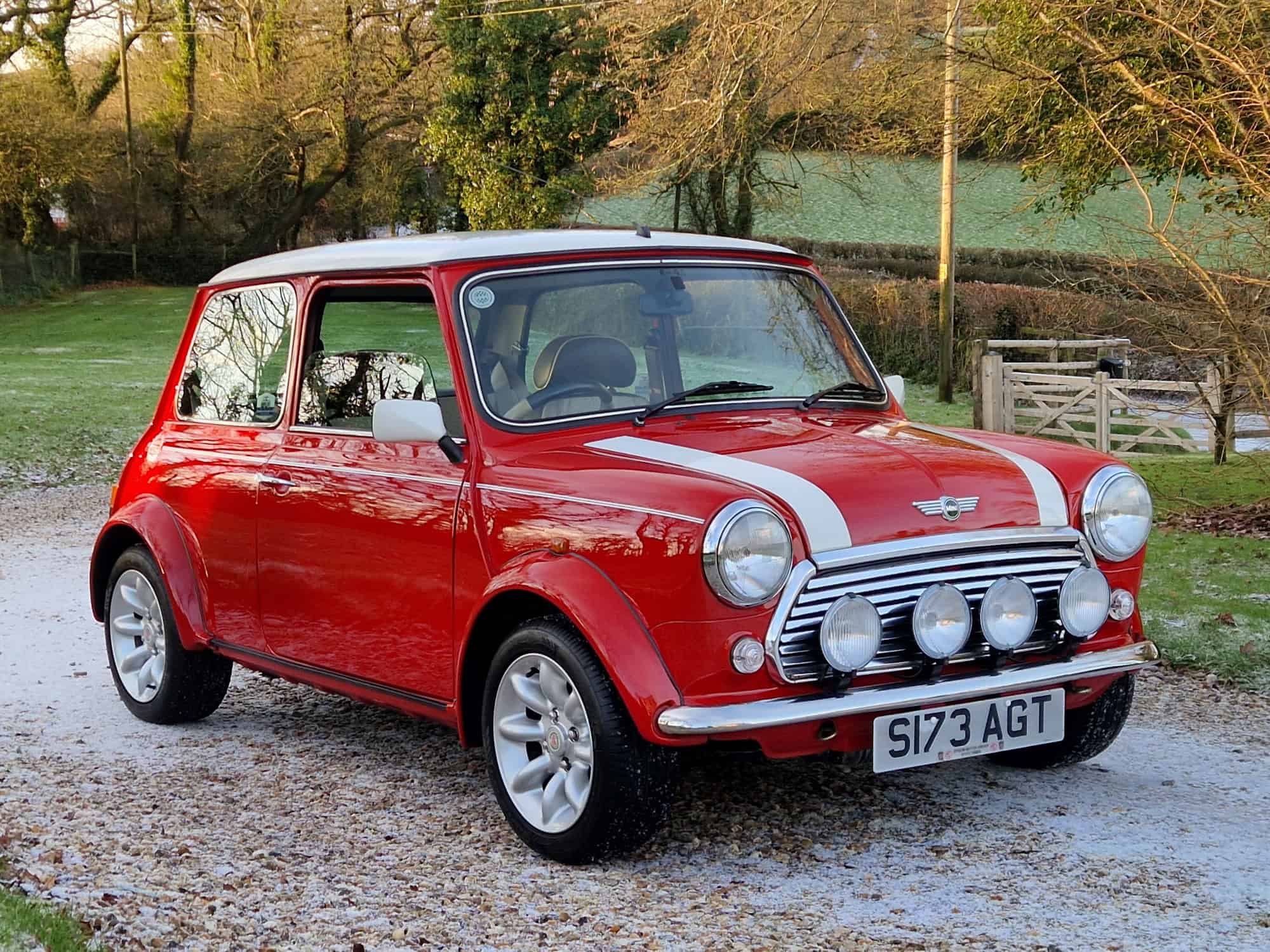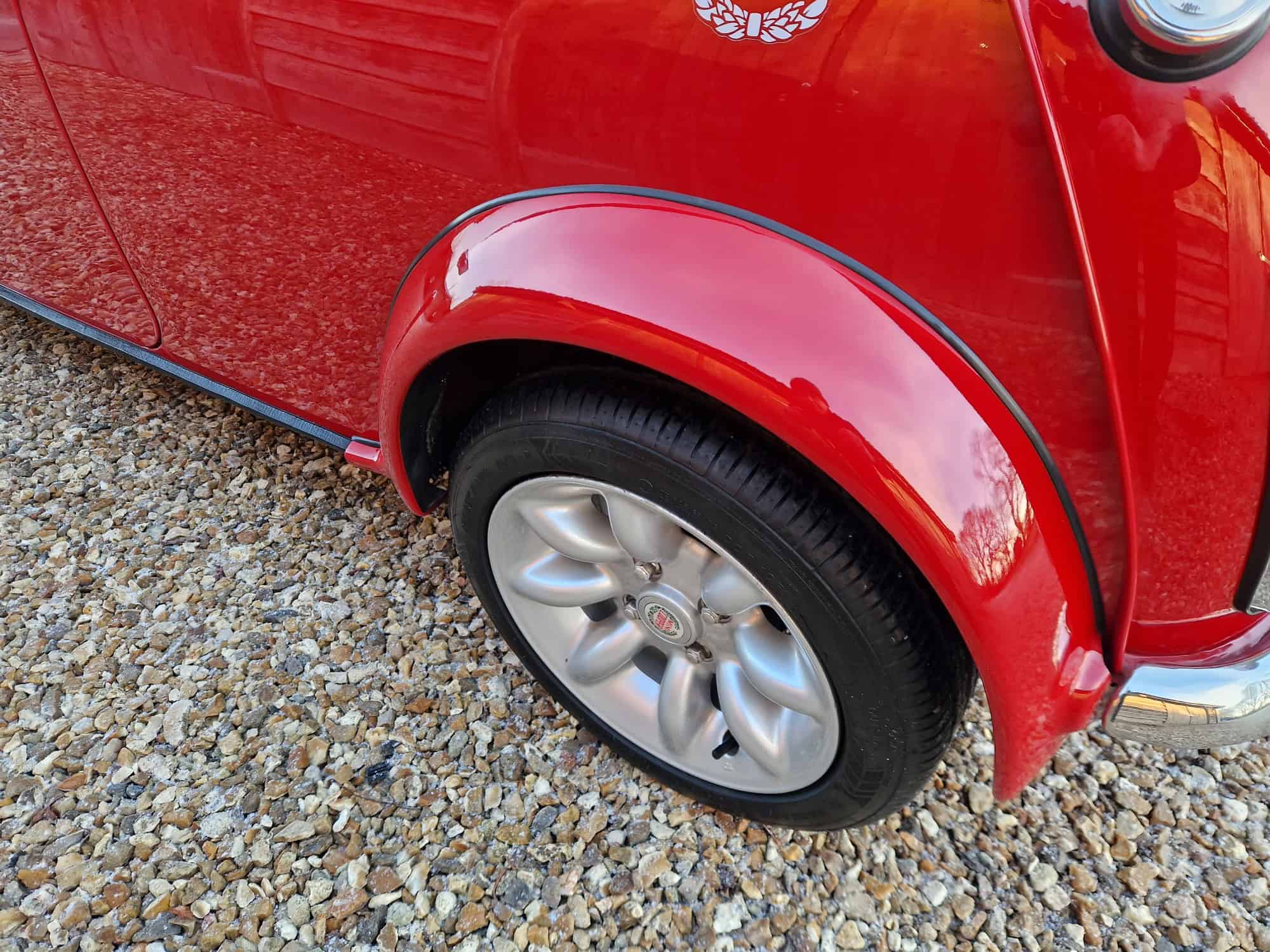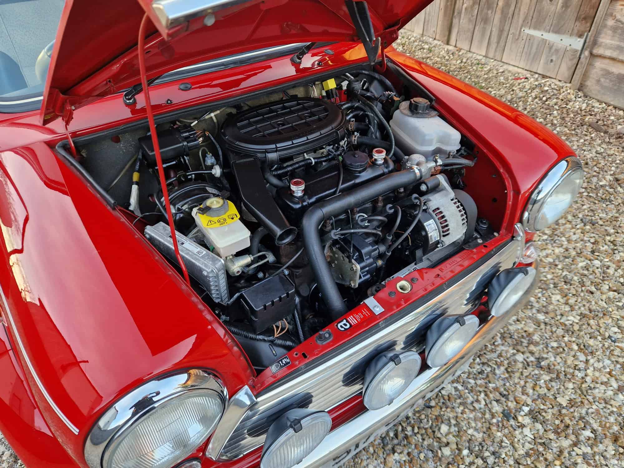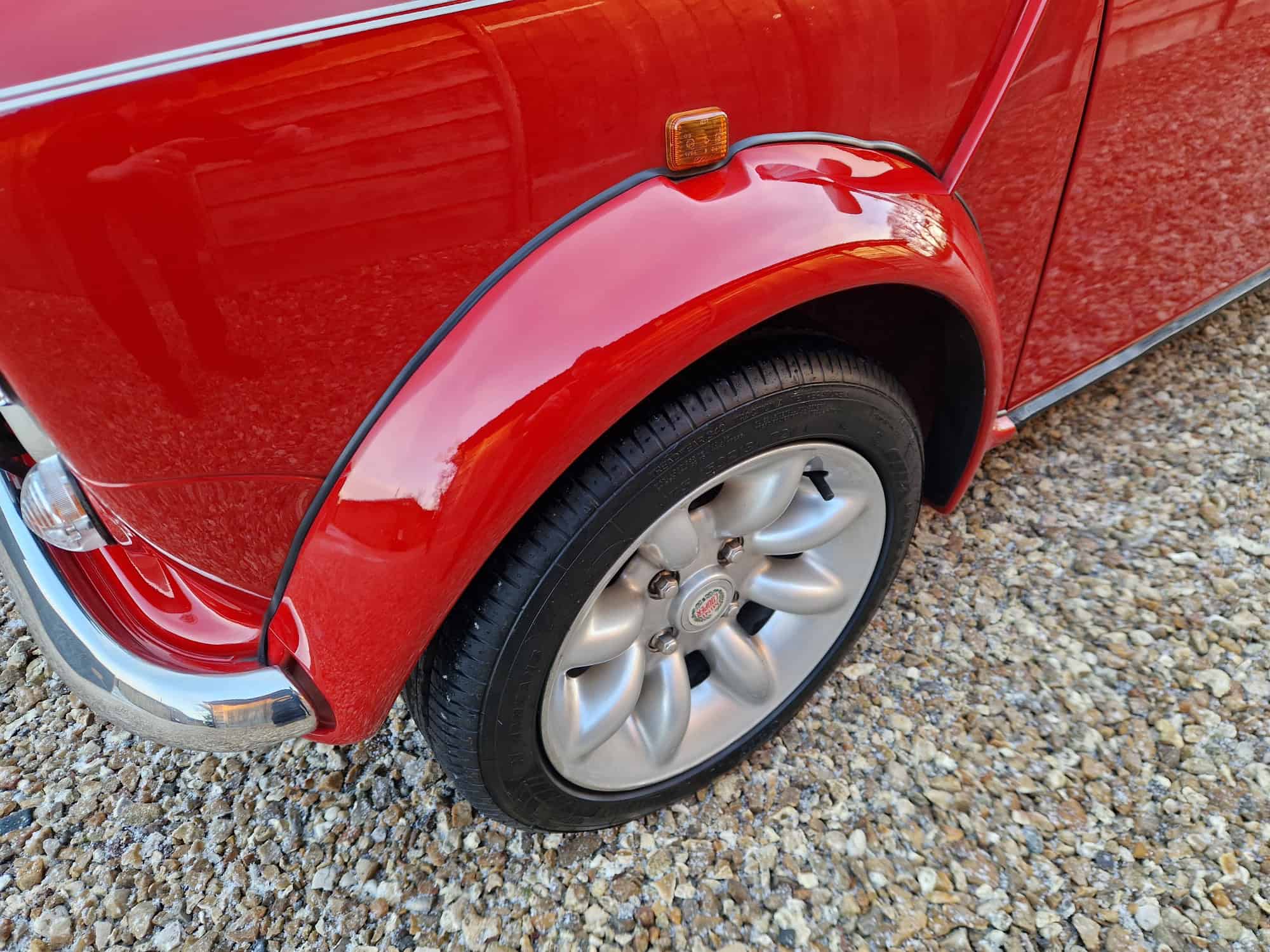 1998 Rover Mini Cooper Sport in classic Flame Red with a white roof, bonnet stripes and mirrors. This outstanding Mini has covered just 9475 miles from new and is very original. I sold the mini 15 years ago when it was on 8400 miles and it has been dry stored and very well cared for. It is very rare to see examples as clean and original. The interior is also in lovely condition with its original factory walnut dashboard and Rover CD Radio. As you would expect it drives very well and feels close to a new Mini Cooper. This is a rare opportunity and will make an exciting Mini Cooper to own, drive and polish. Free delivery to your door in my curtain sided van within 200 miles of Tiverton.