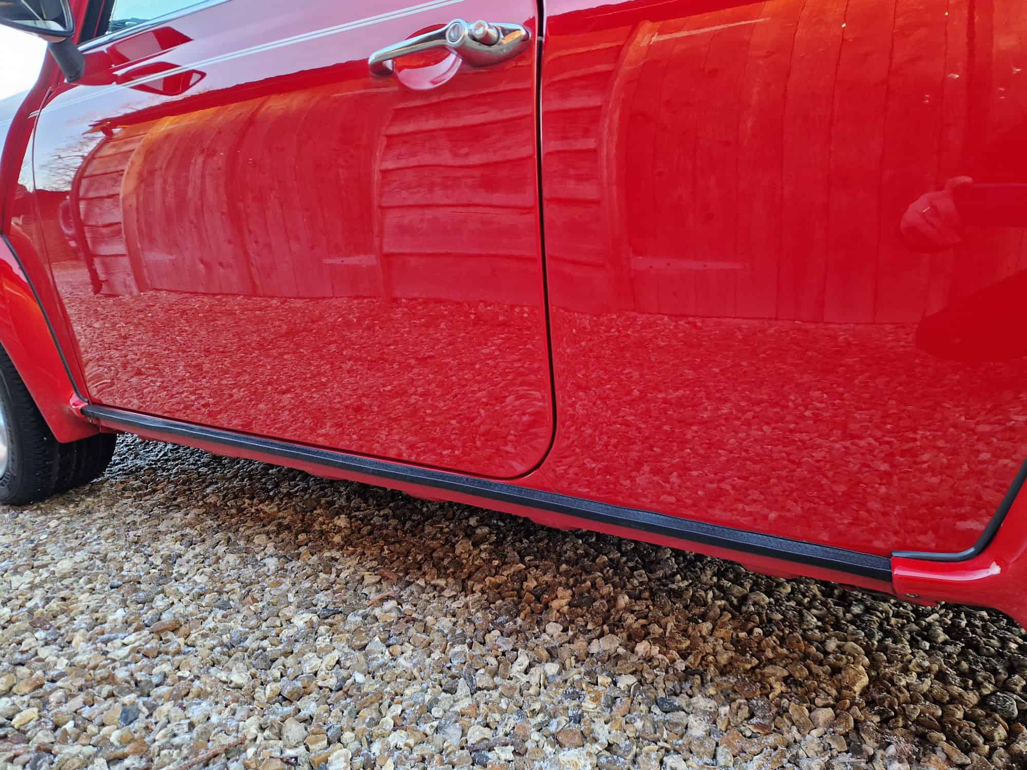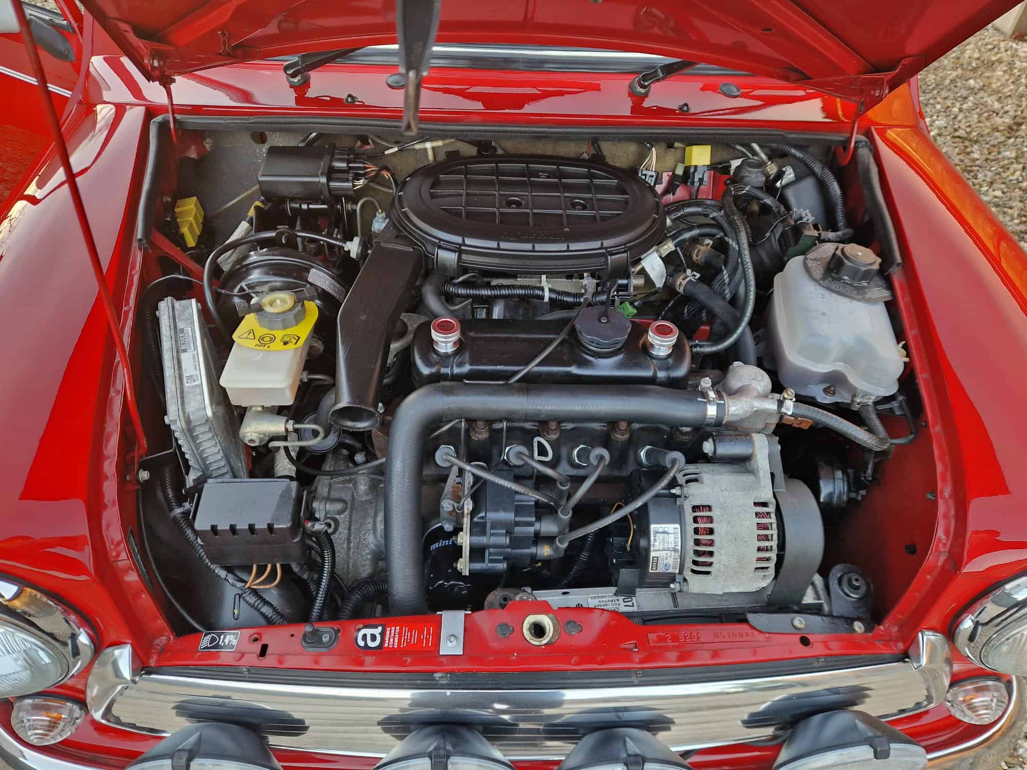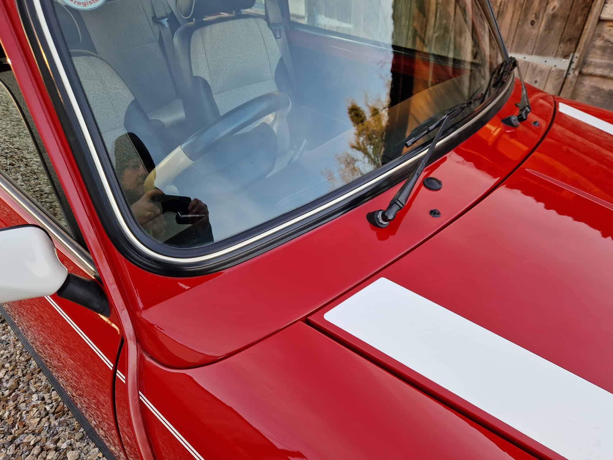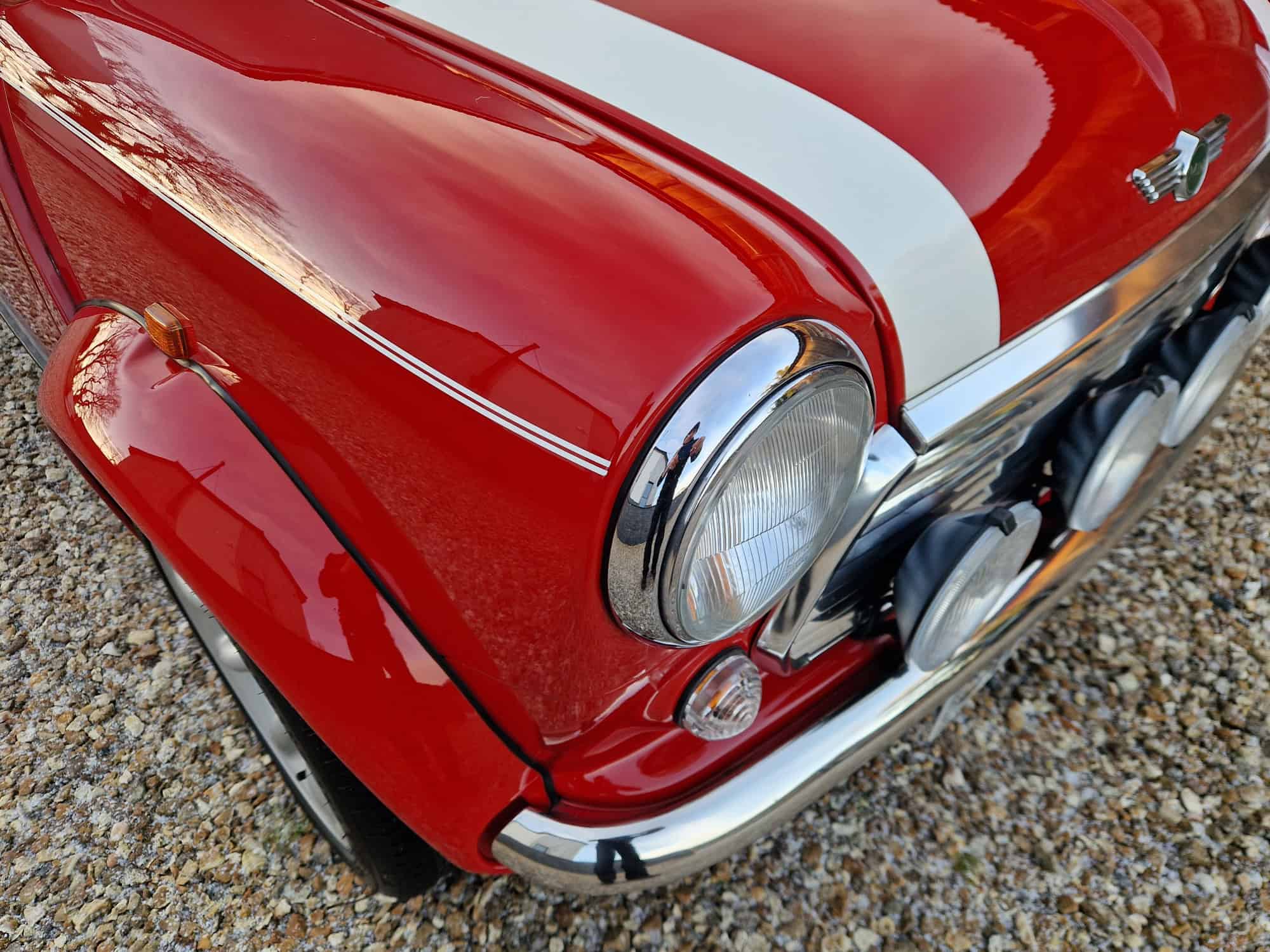1998 Rover Mini Cooper Sport in classic Flame Red with a white roof, bonnet stripes and mirrors. This outstanding Mini has covered just 9475 miles from new and is very original. I sold the mini 15 years ago when it was on 8400 miles and it has been dry stored and very well cared for. It is very rare to see examples as clean and original. The interior is also in lovely condition with its original factory walnut dashboard and Rover CD Radio. As you would expect it drives very well and feels close to a new Mini Cooper. This is a rare opportunity and will make an exciting Mini Cooper to own, drive and polish. Free delivery to your door in my curtain sided van within 200 miles of Tiverton.