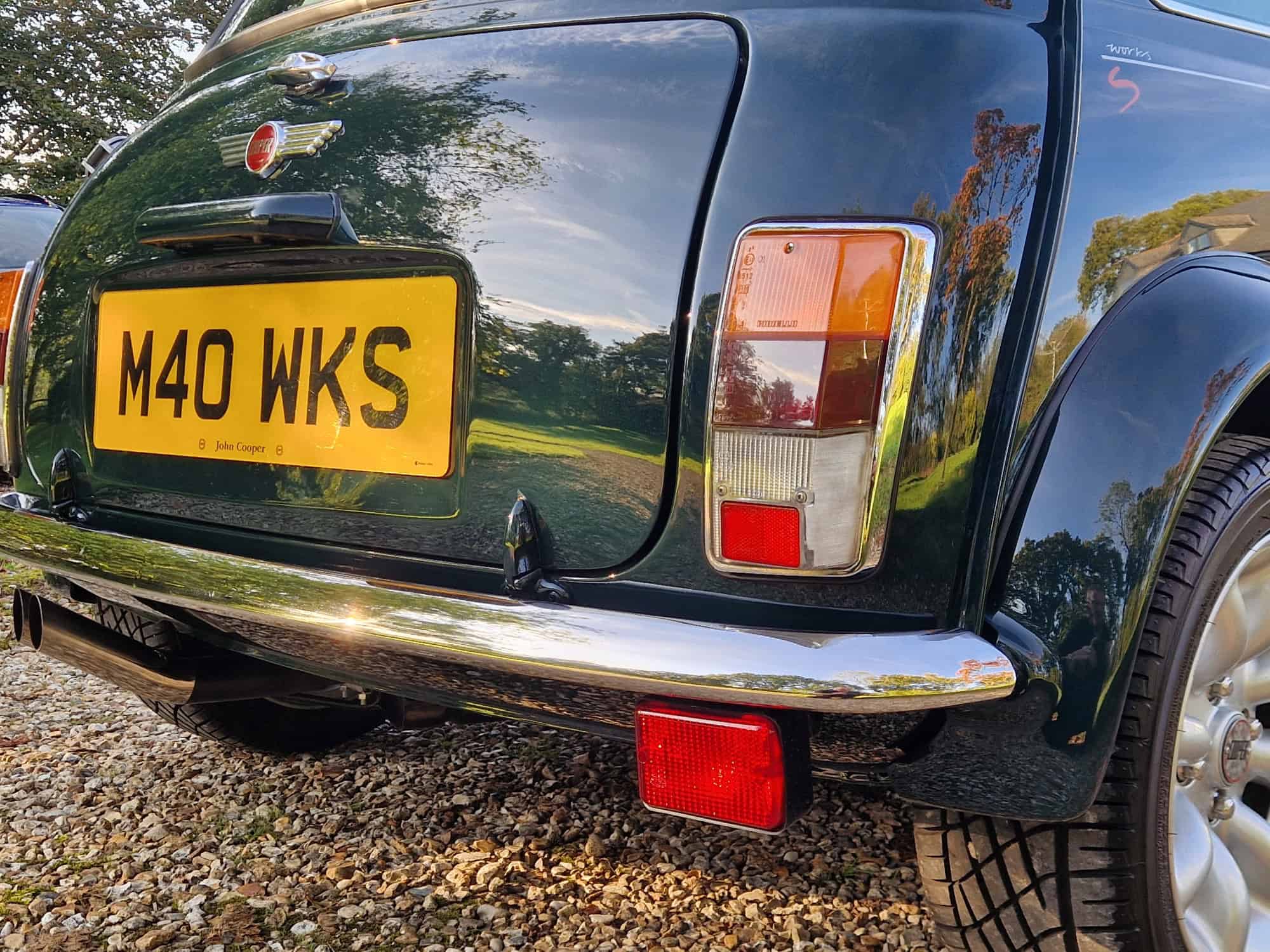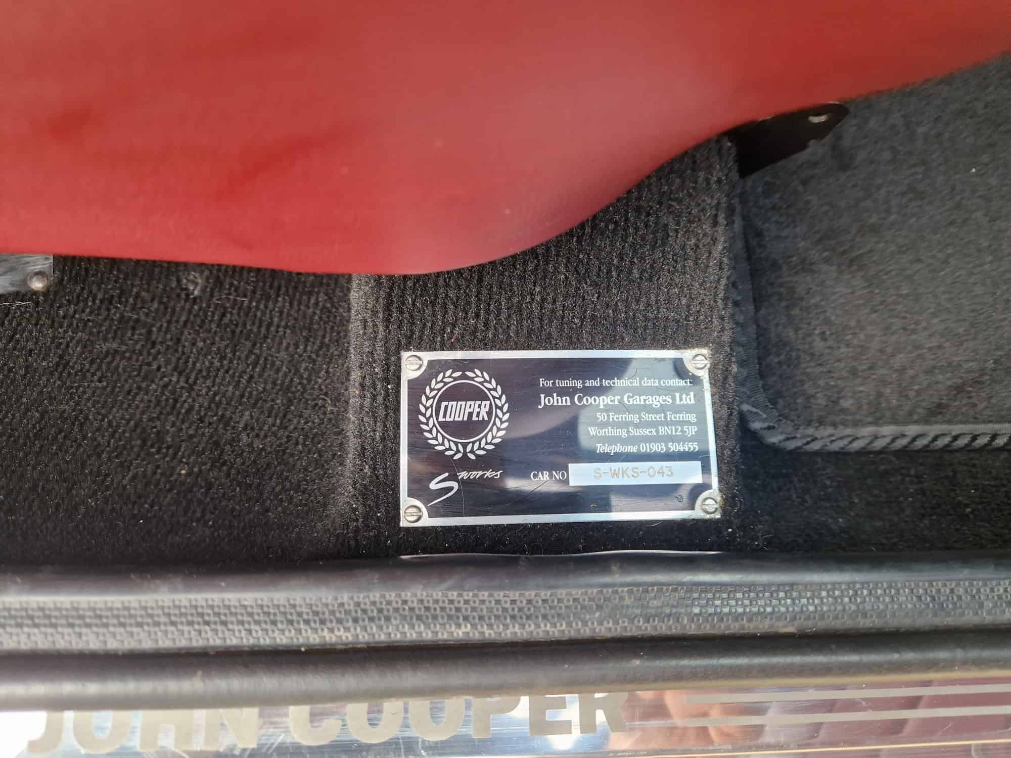 1999 Rover Mini Cooper LE S Works by John Cooper Garages.  This limited edition Mini were all made in Brooklands green with a lovely Grenadine red leather interior. Rover made a total of 300 and John Cooper Garages bought 25 and converted them to S Works 90 BHP specification. This is one of the 25 made and is now very special and collectable. It has the 90 BHP S Works engine with a signed certificate to support this. John Cooper Garages were the suppling dealer from new and it has John Cooper Garages service history. It also has the signed door furniture, Cooper pedals and Cooper door step covers. This limited edition was built to commemorate the 40th anniversary of Coopers victory in the F1 World Championship, so the number plate M40 WKS is very suitable for the car! The last passionate owner has restored the car to a unique level which can only be described as outstanding. The quality of the paintwork is to a show winning standard and this level of finished is also seen underneath the car and in the engine bay. I have taken detailed pictures to try and show this off. I have sold a good number of quality minis and this is one of the highest standard cars I have had the pleasure of selling. It has covered 47000 miles from new and I have a detailed history file to support this. The file also includes some nice period brochures and magazine articles from back in the day.  Free delivery to your door in my curtain sided van within 200 miles of Tiverton.